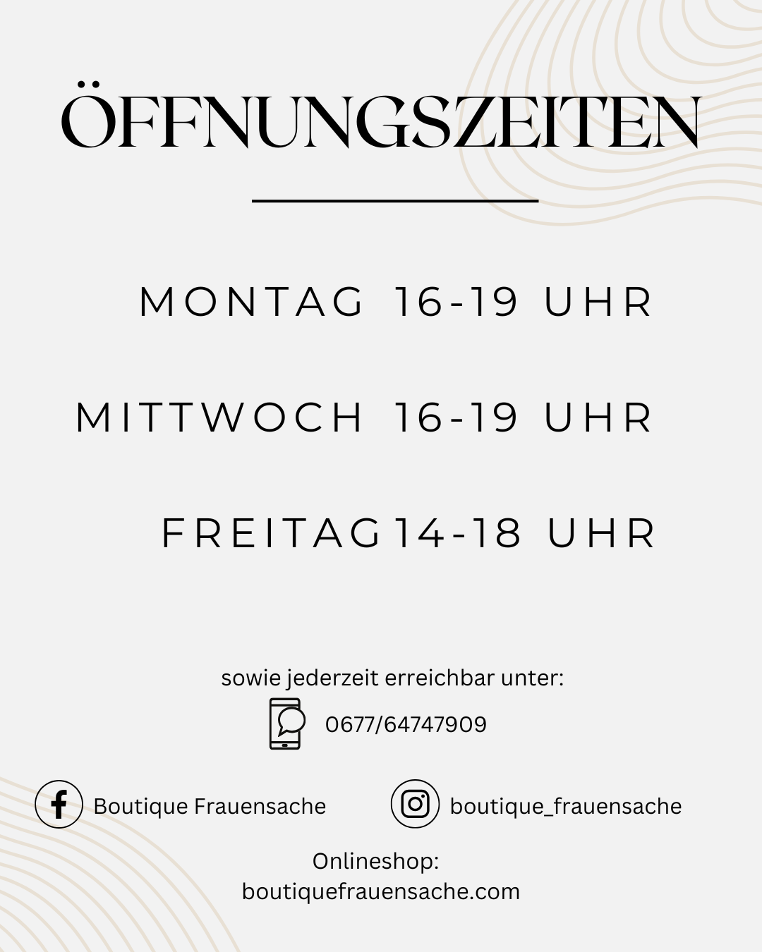 Wichtige Informationen zu unserer Boutique in Obersiebenbrunn