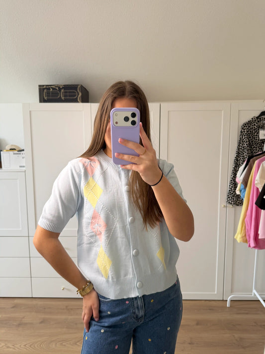 Leichtstrickjacke "Pastel Argyle" Hellblau