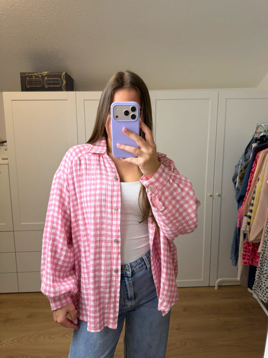 Musselinbluse "Karo" Hellrosa