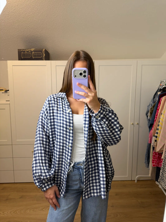 Musselinbluse "Karo" Dunkelblau