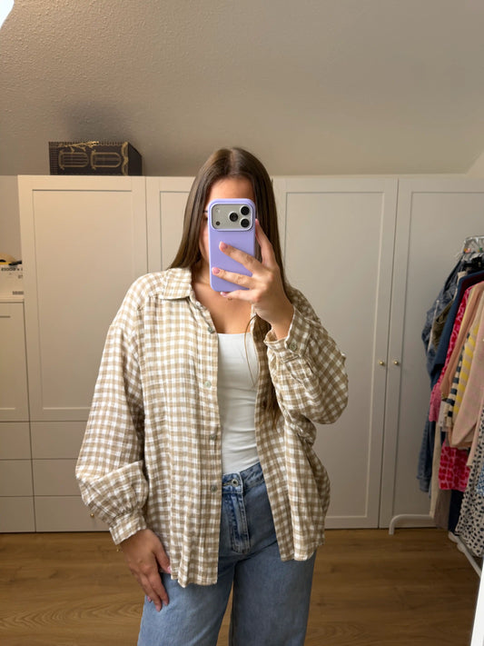Musselinbluse "Karo" Taupe