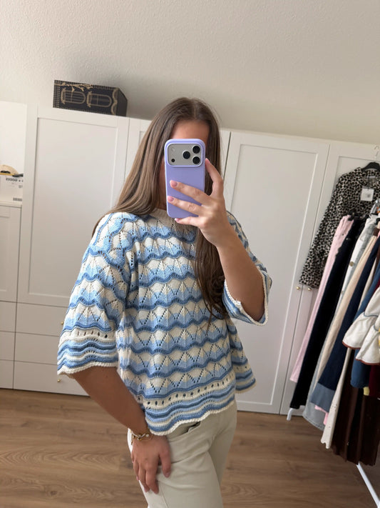 Häkelpullover "Wave" Blau