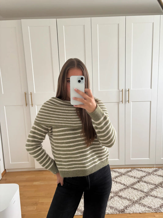 Off-Shoulder-Pullover "Streifen" Grün