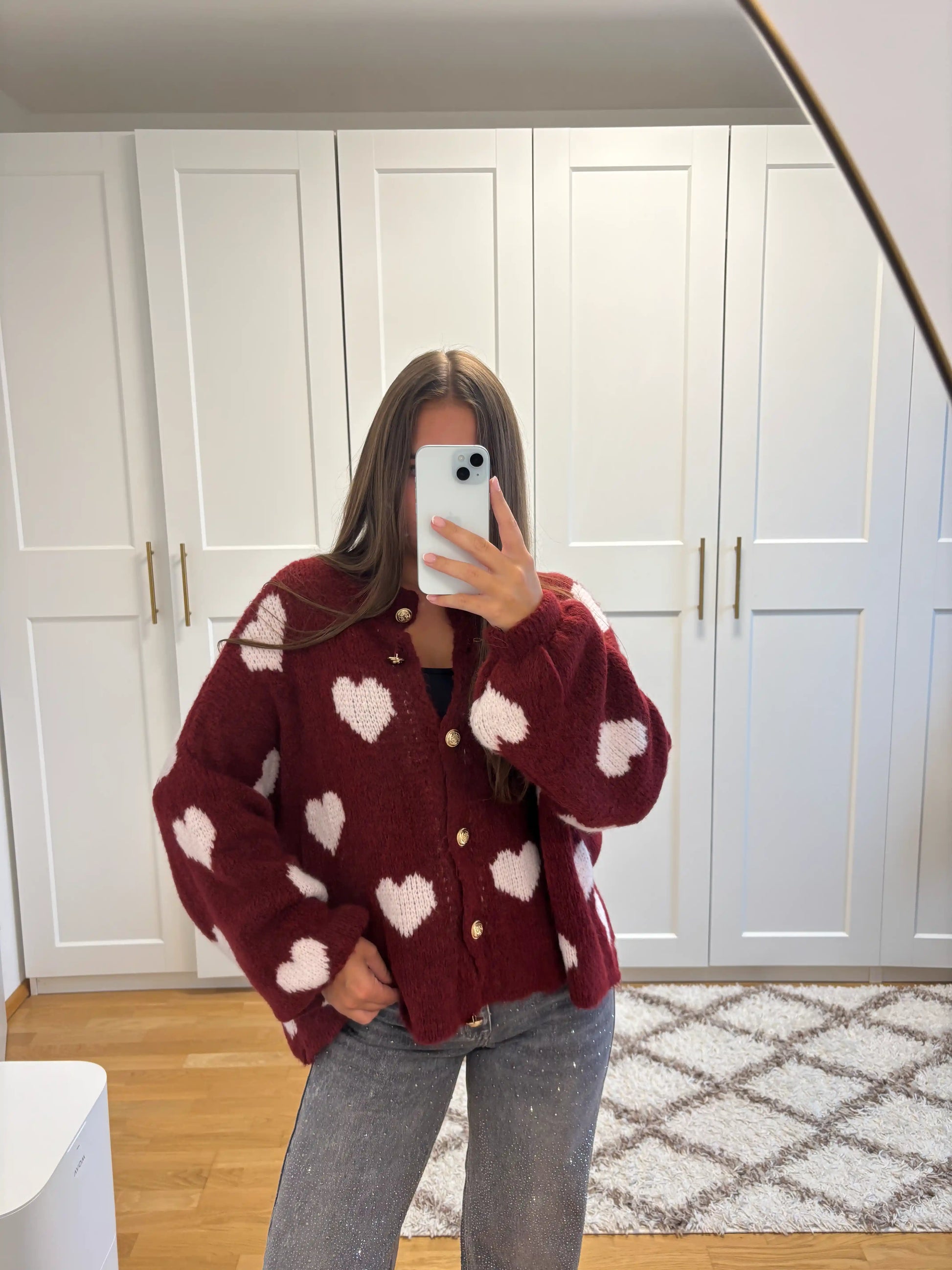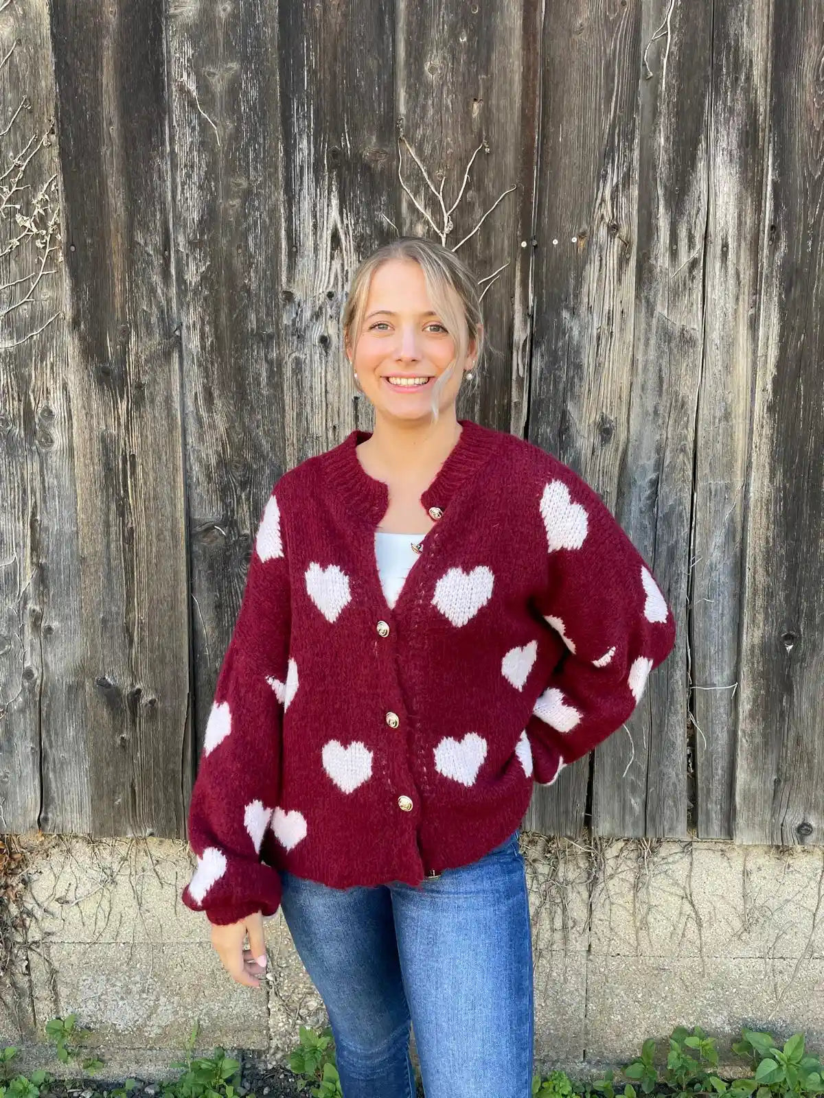 Cardigan mit großem Herzmuster mit goldenen Knöpfen