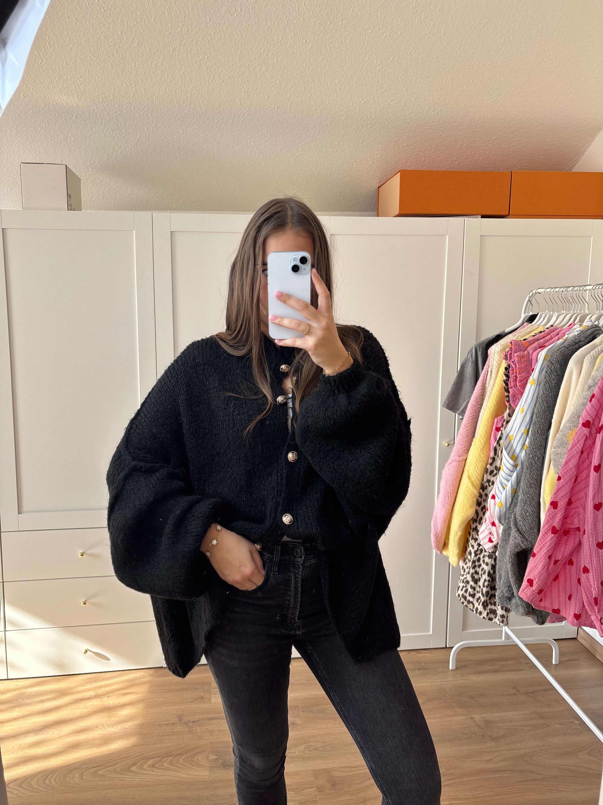 Flauschiger Pullover mit Ziernähten an den Ballonärmeln und leichtem Stehkragen
