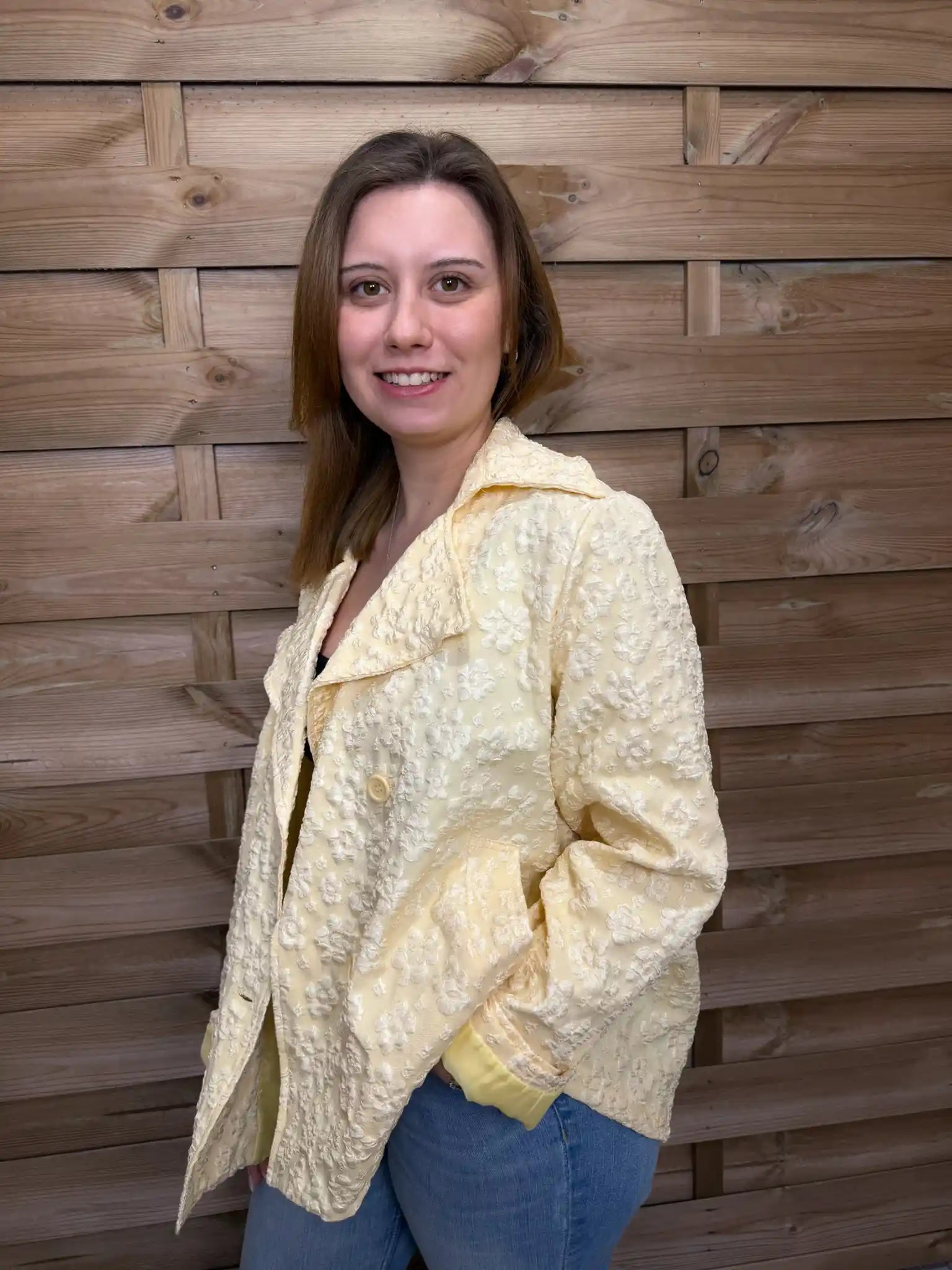 Farbe: Pastellgelbd mit floralem Strukturmuster