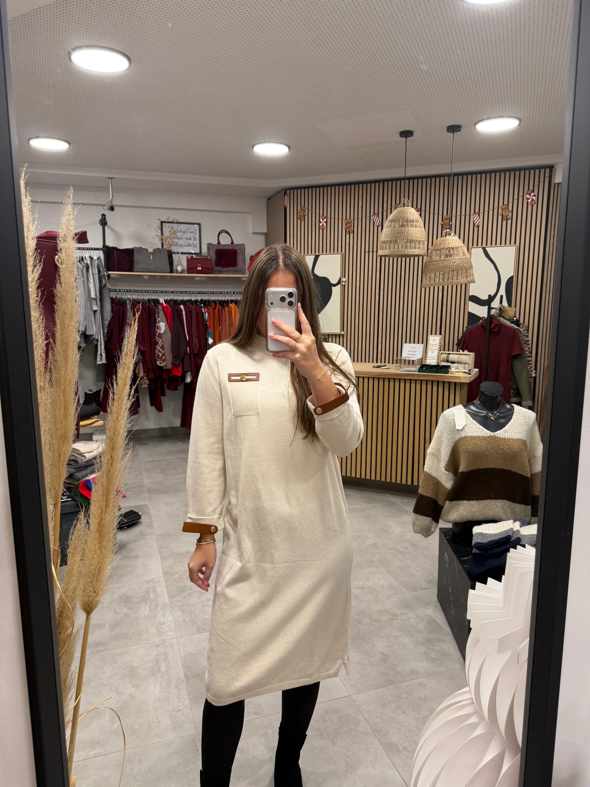 Kleid aus Strick mit Lederimitatdetails in Camel-Braun