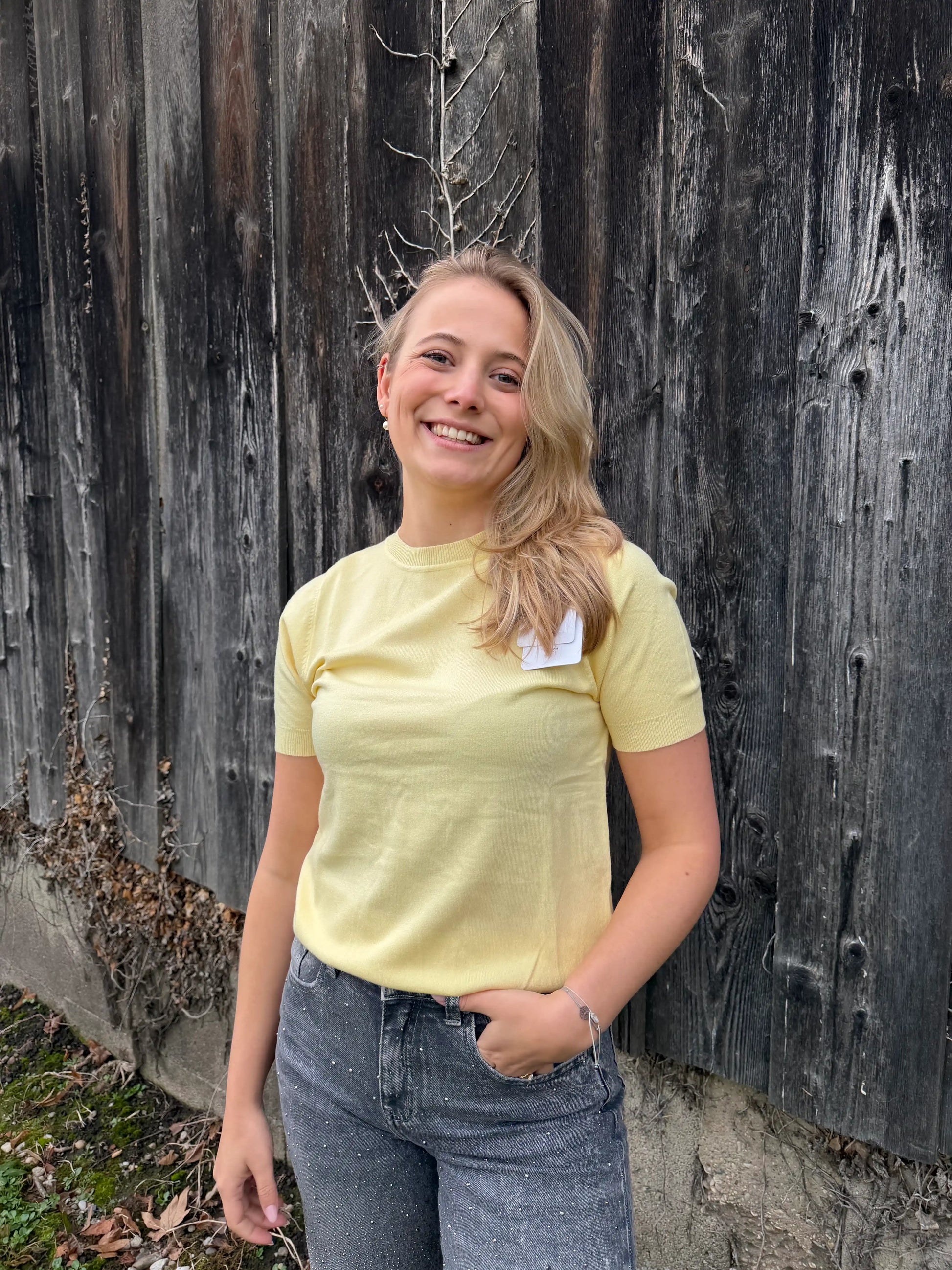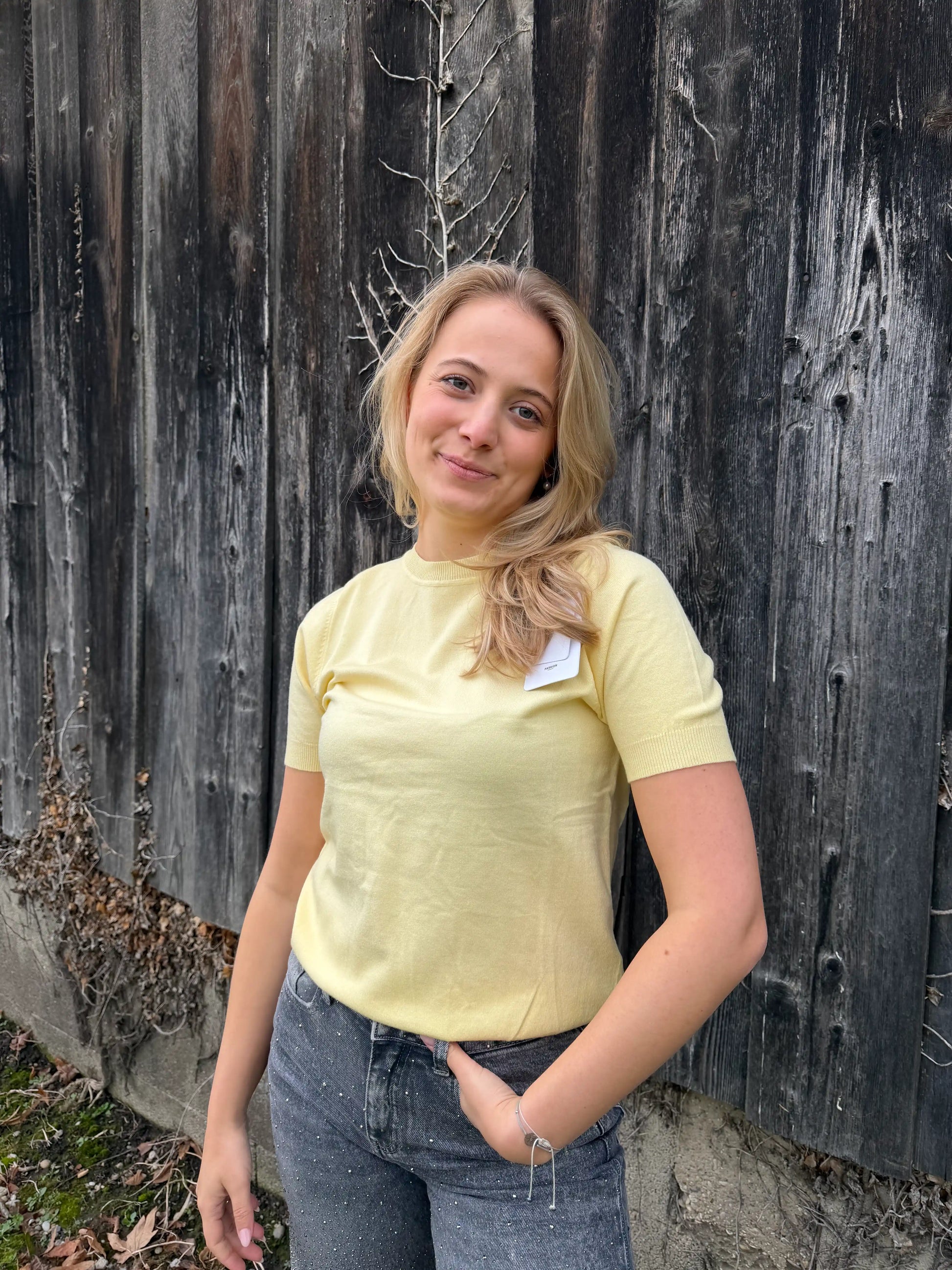 Kurzarmpullover "Soft" Pastellgelb