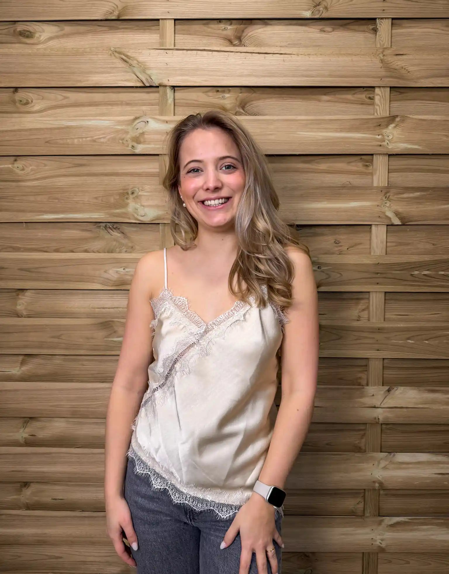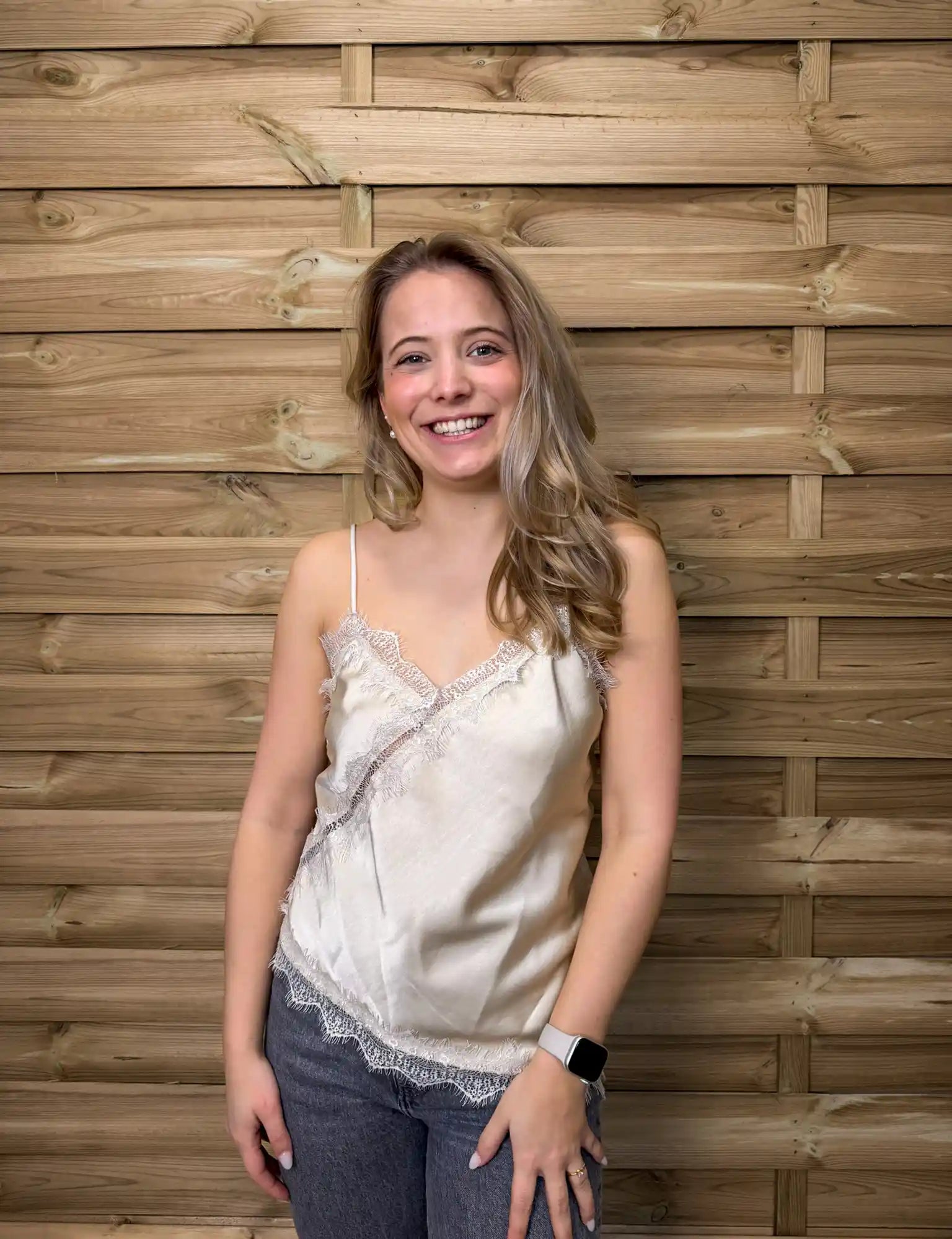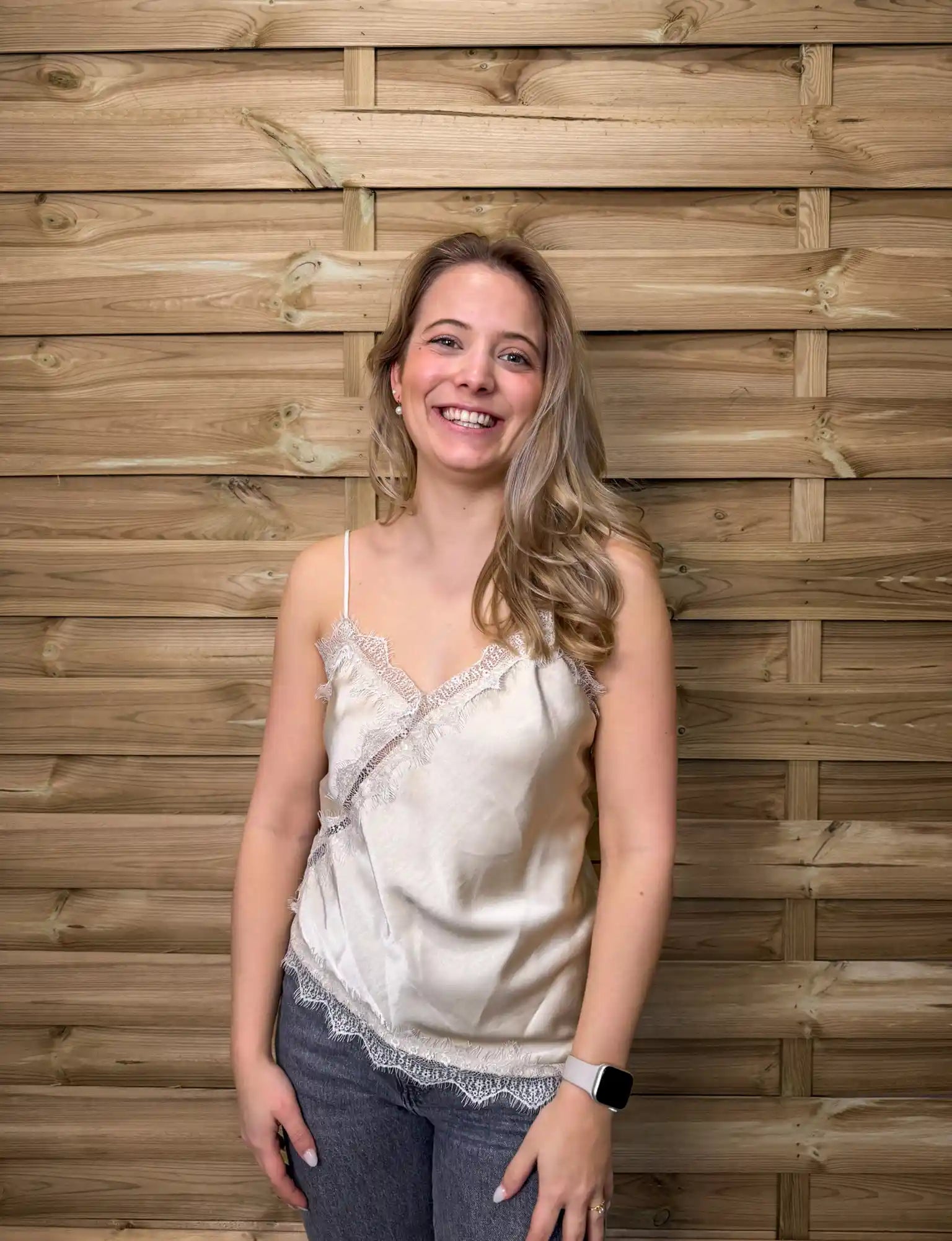 Die schmalen Träger unterstreichen den femininen Look und machen das Top zum perfekten Begleiter – solo getragen oder unter Blazer, Strickjacke oder Cardigan.