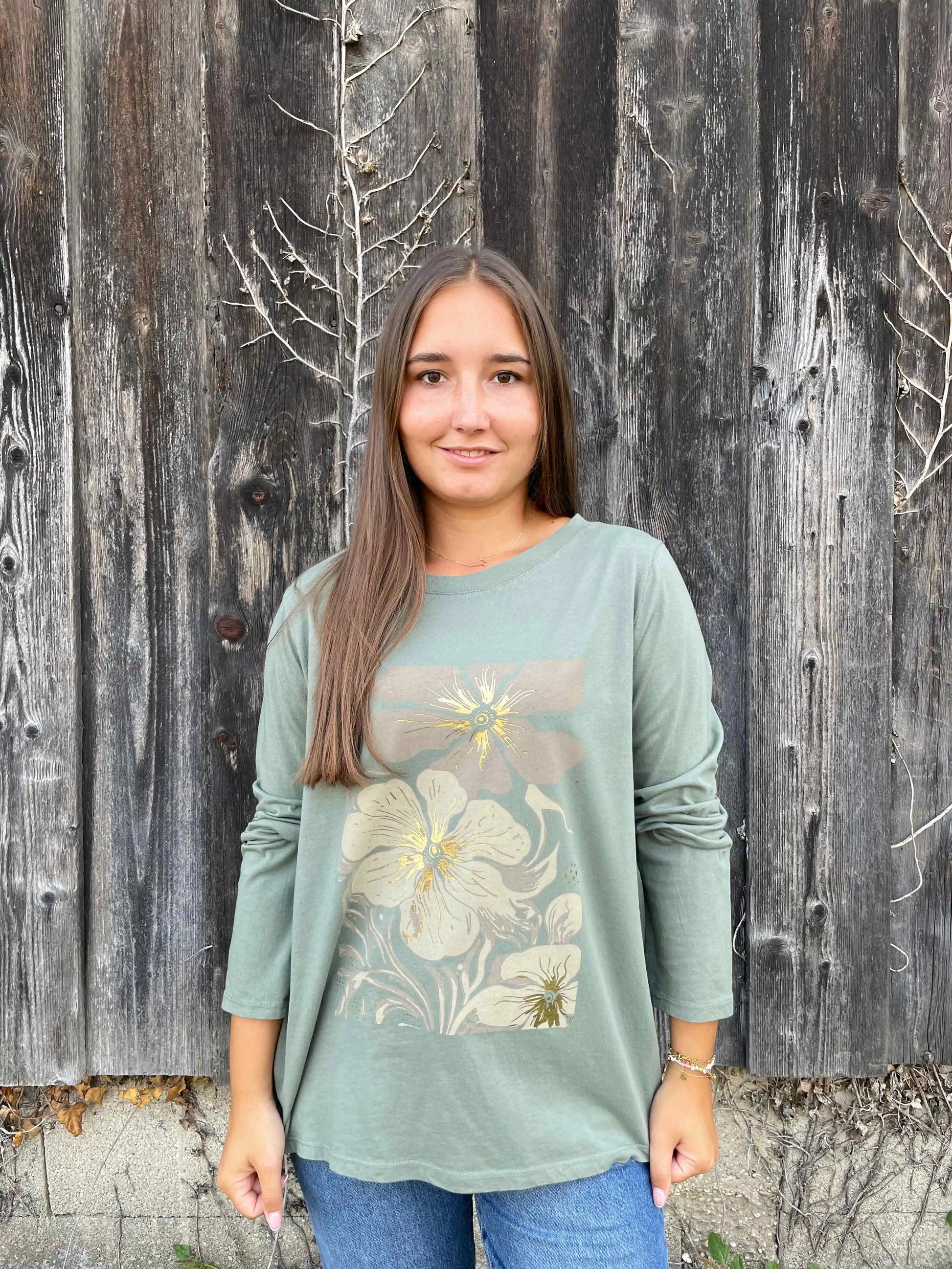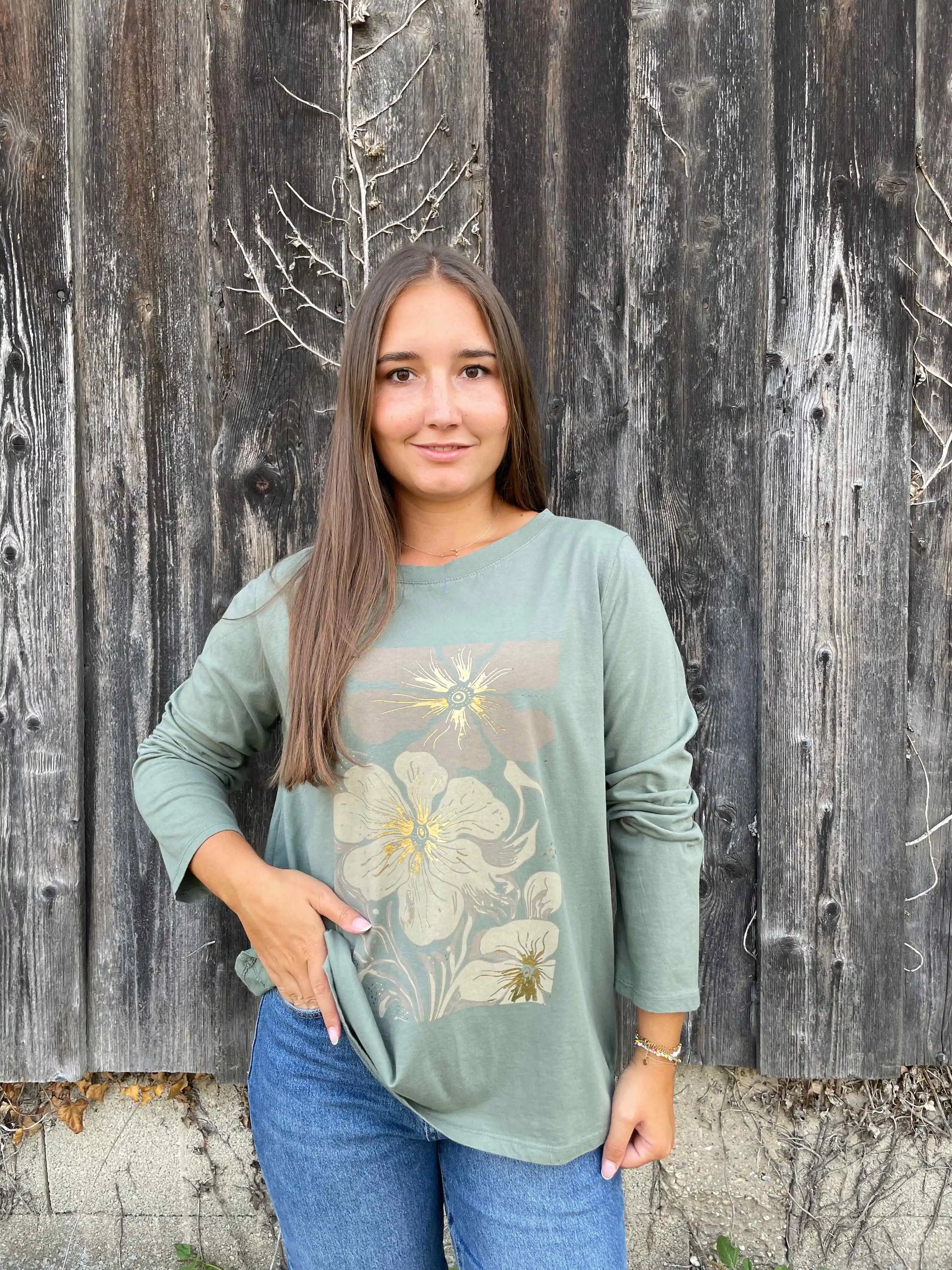 Langarmshirt "Floraly" Olivegrün