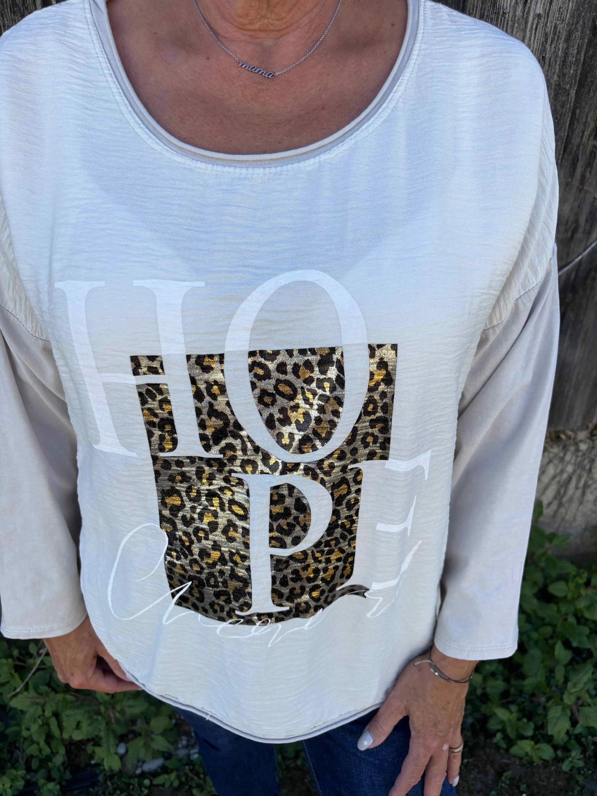 Langarmshirt mit Aufschrift "HOPE" und Leolook.