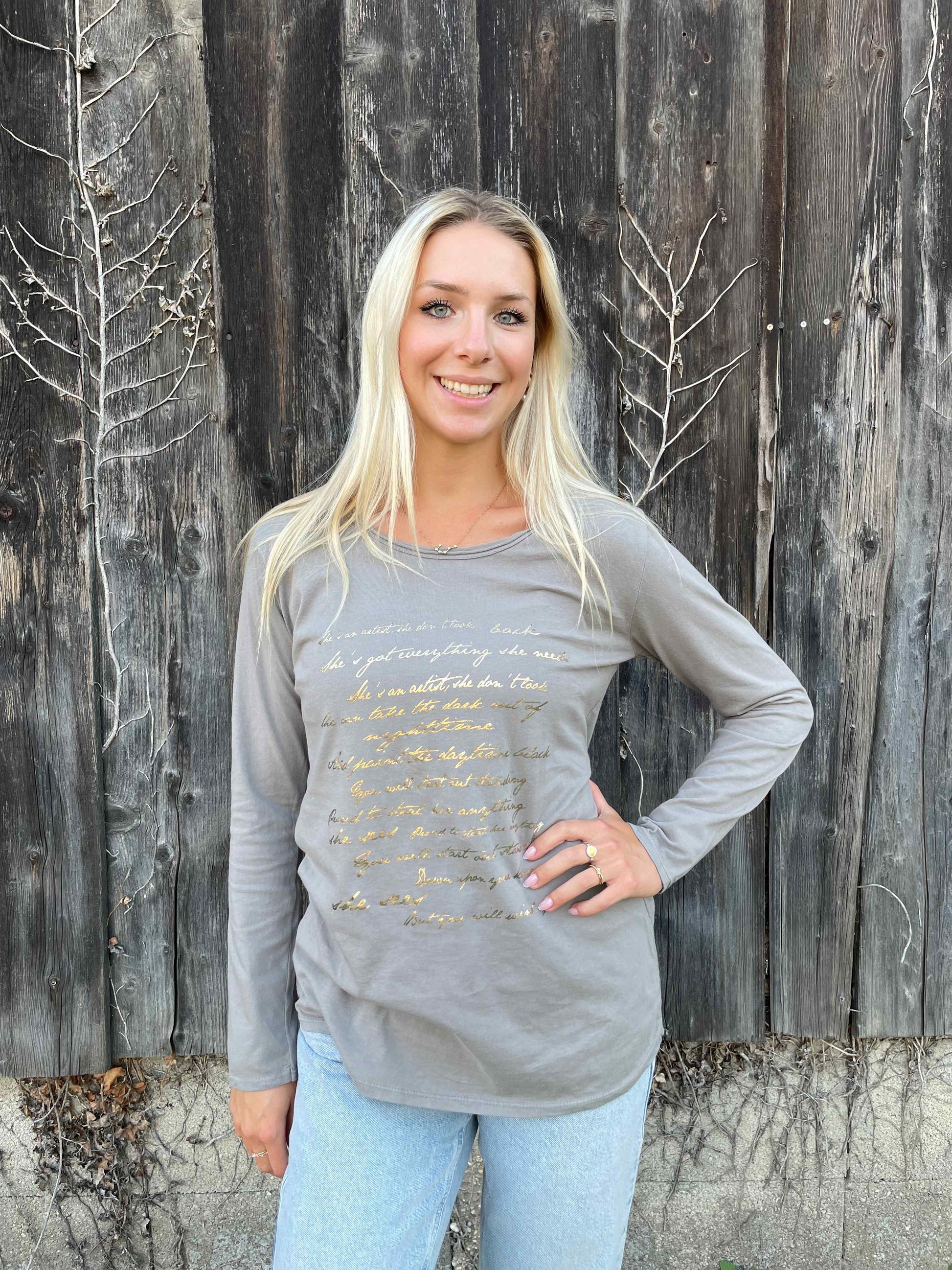 Langarmshirt "Letter" Taupe