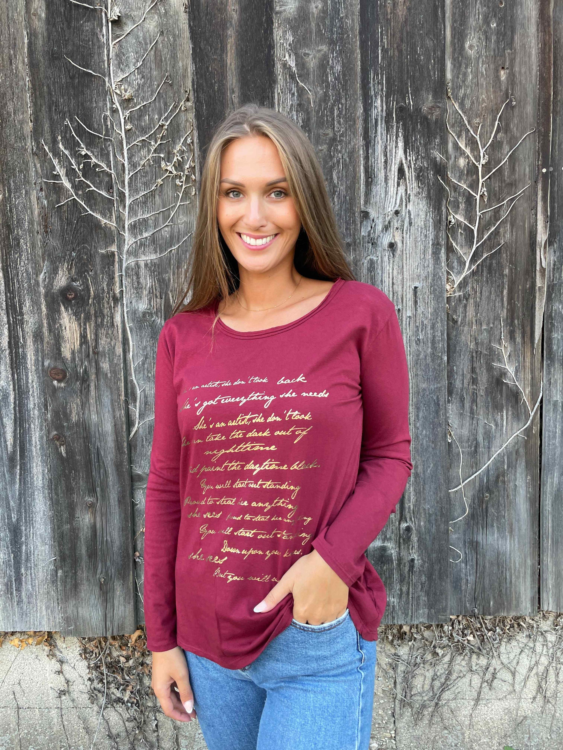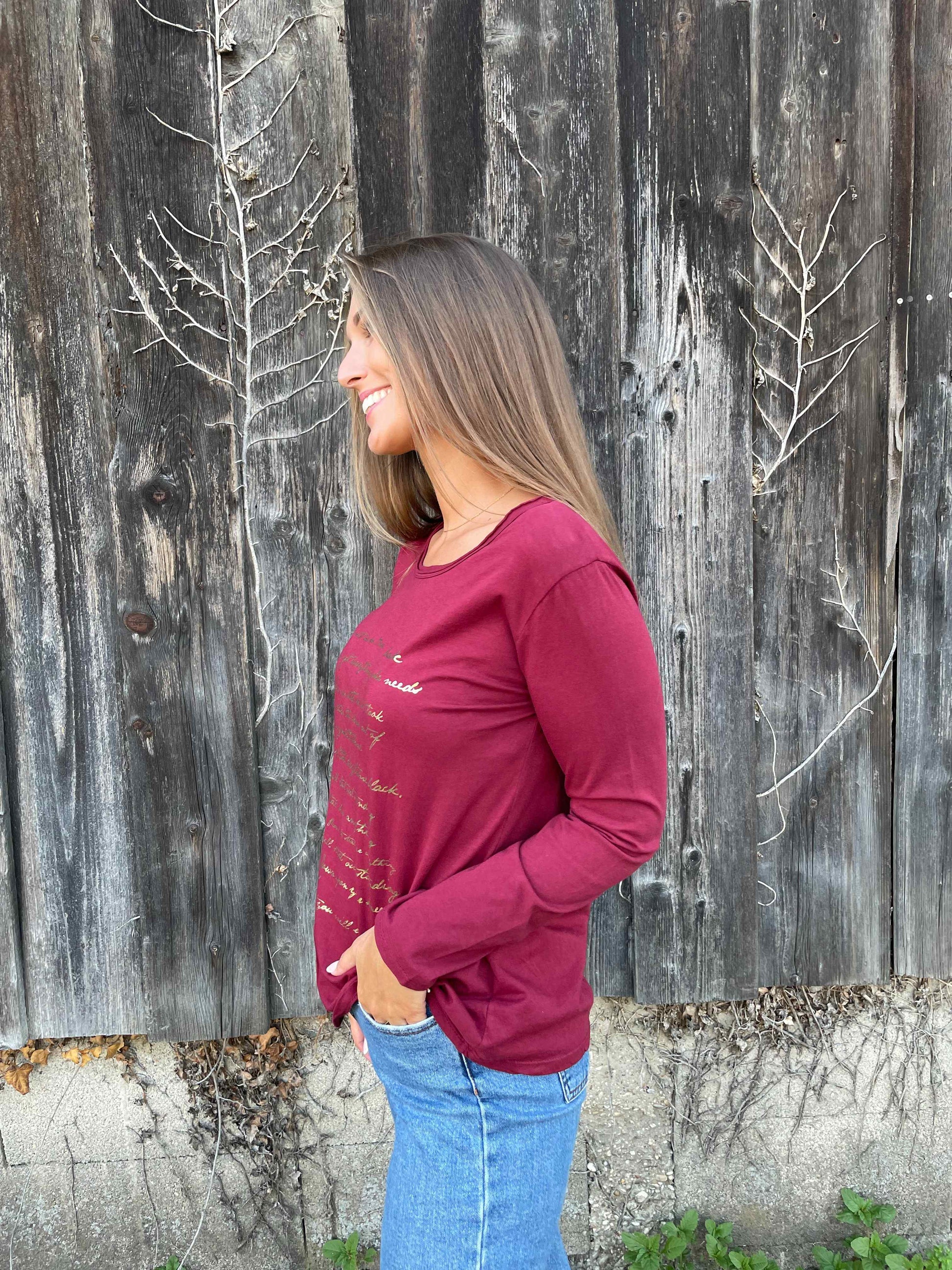 Langarmshirt "Letter" Weinrot