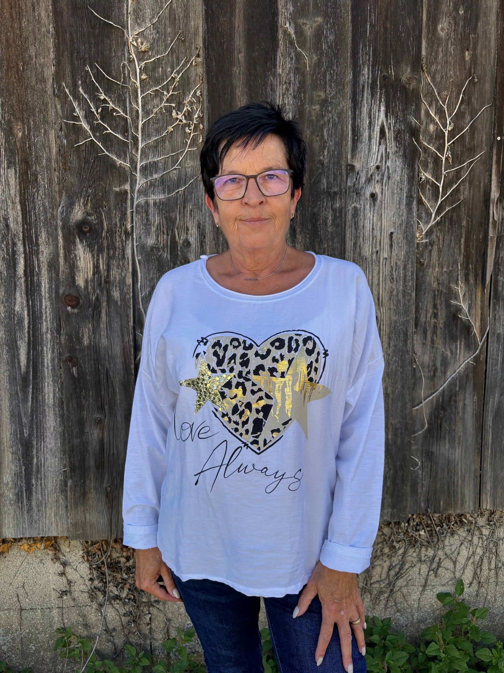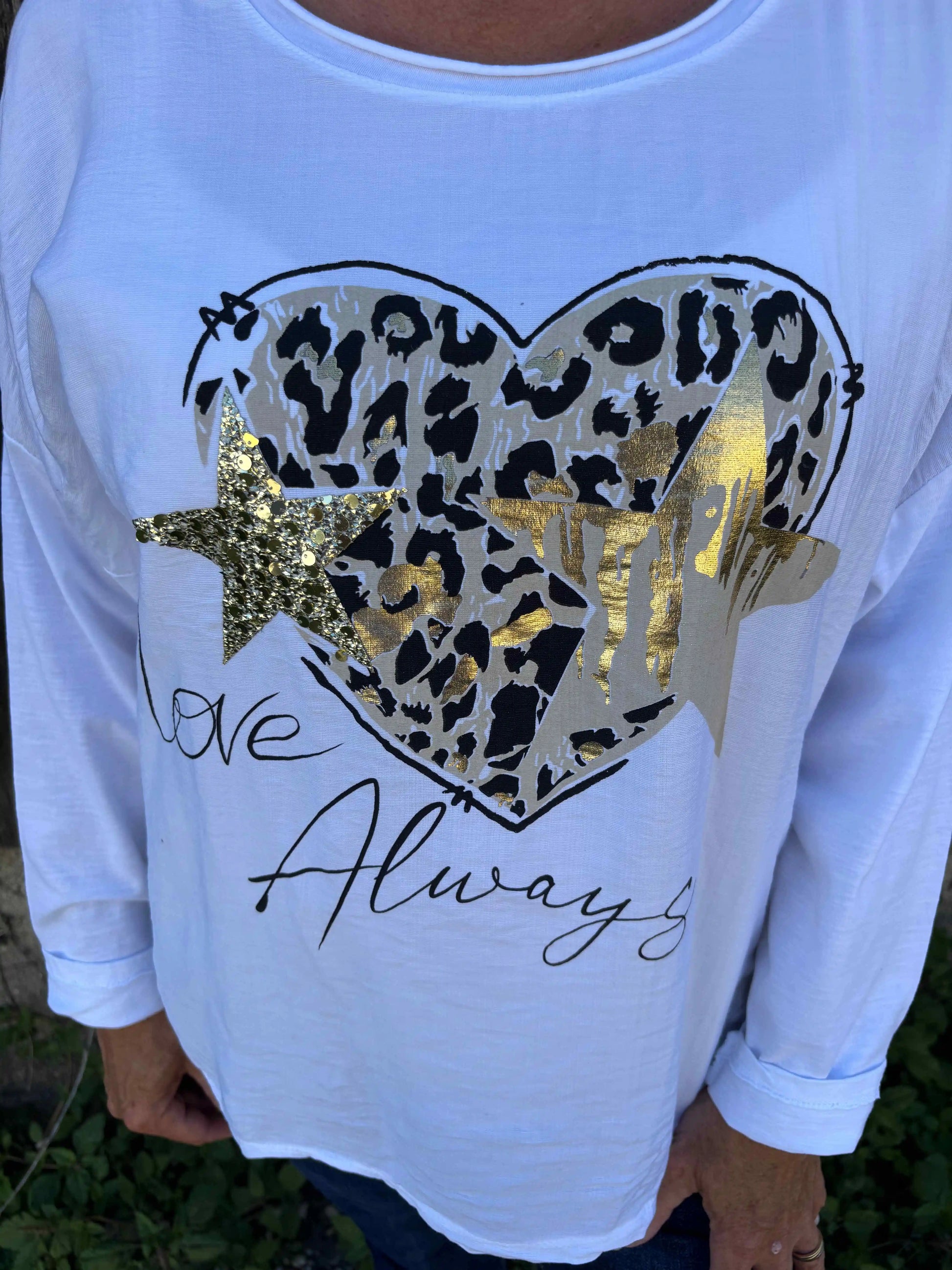 Shirt "Love Always" mit Animal-Print & Glitzersternen