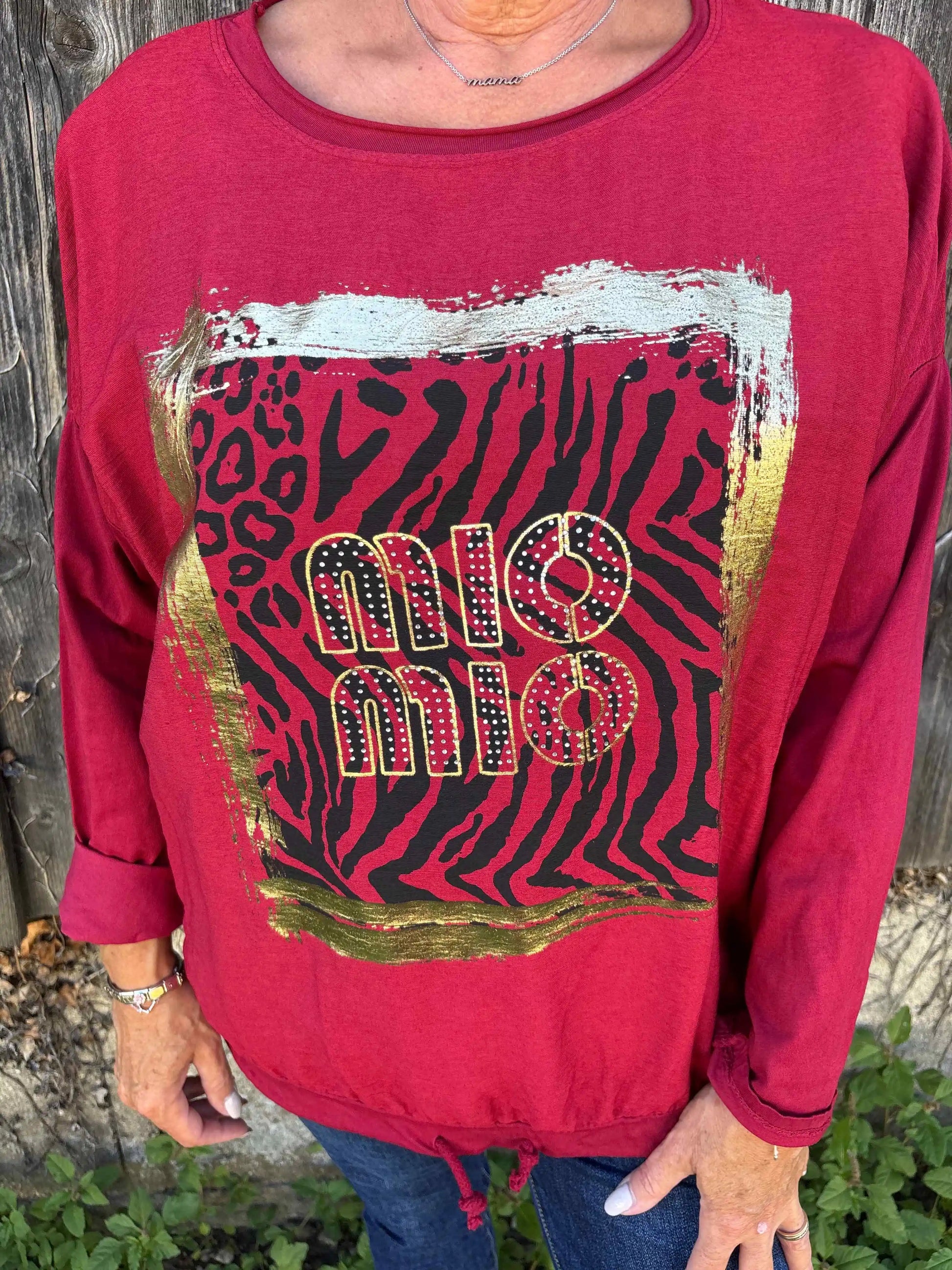 Das Shirt besticht durch seinen auffälligen Animal-Print im angesagten Mix-Design und glitzernden Details. Mit Tunnelzug am Saum für eine lässige Passform und einem bequemen, geraden Schnitt – perfekt für stylische Alltagslooks mit Statement.