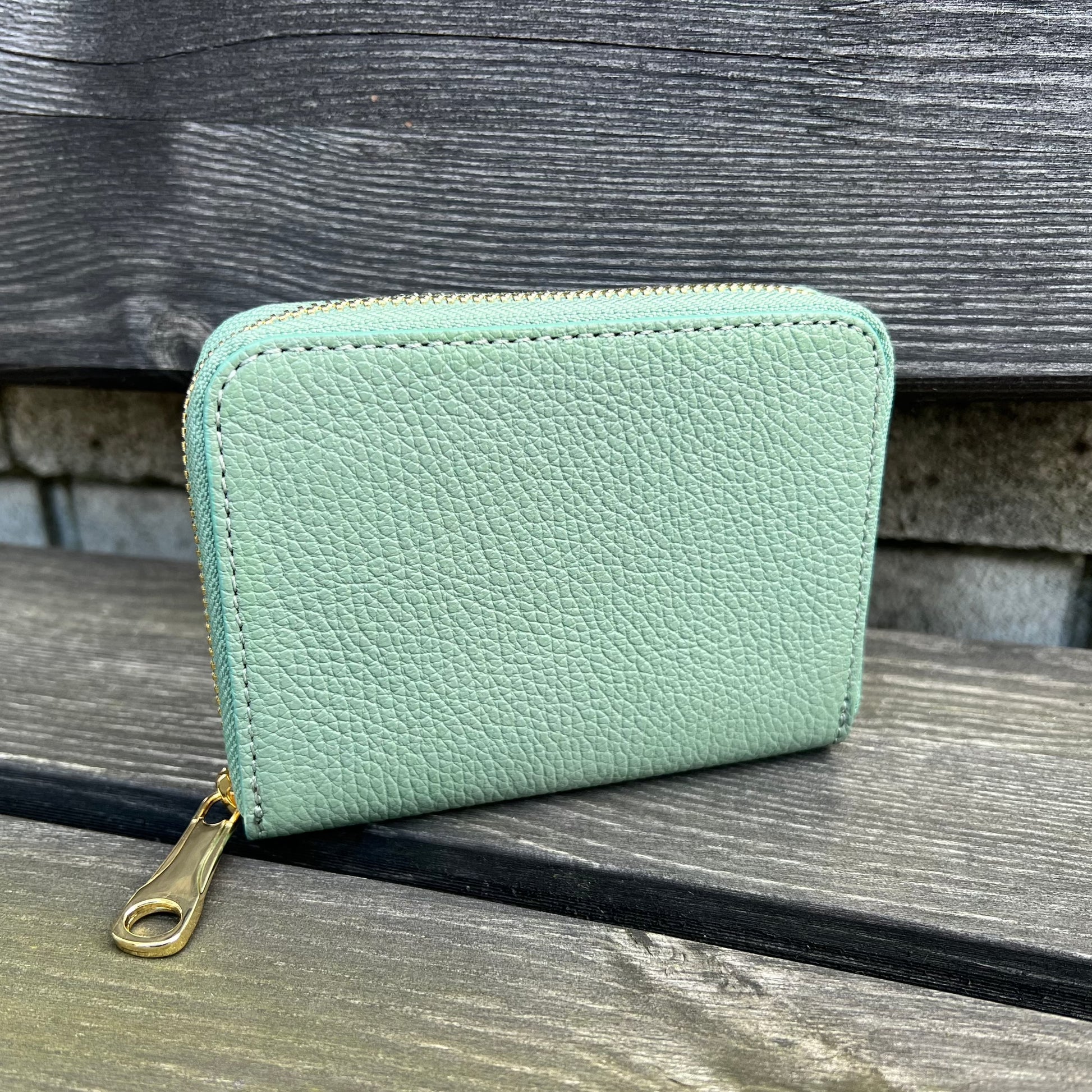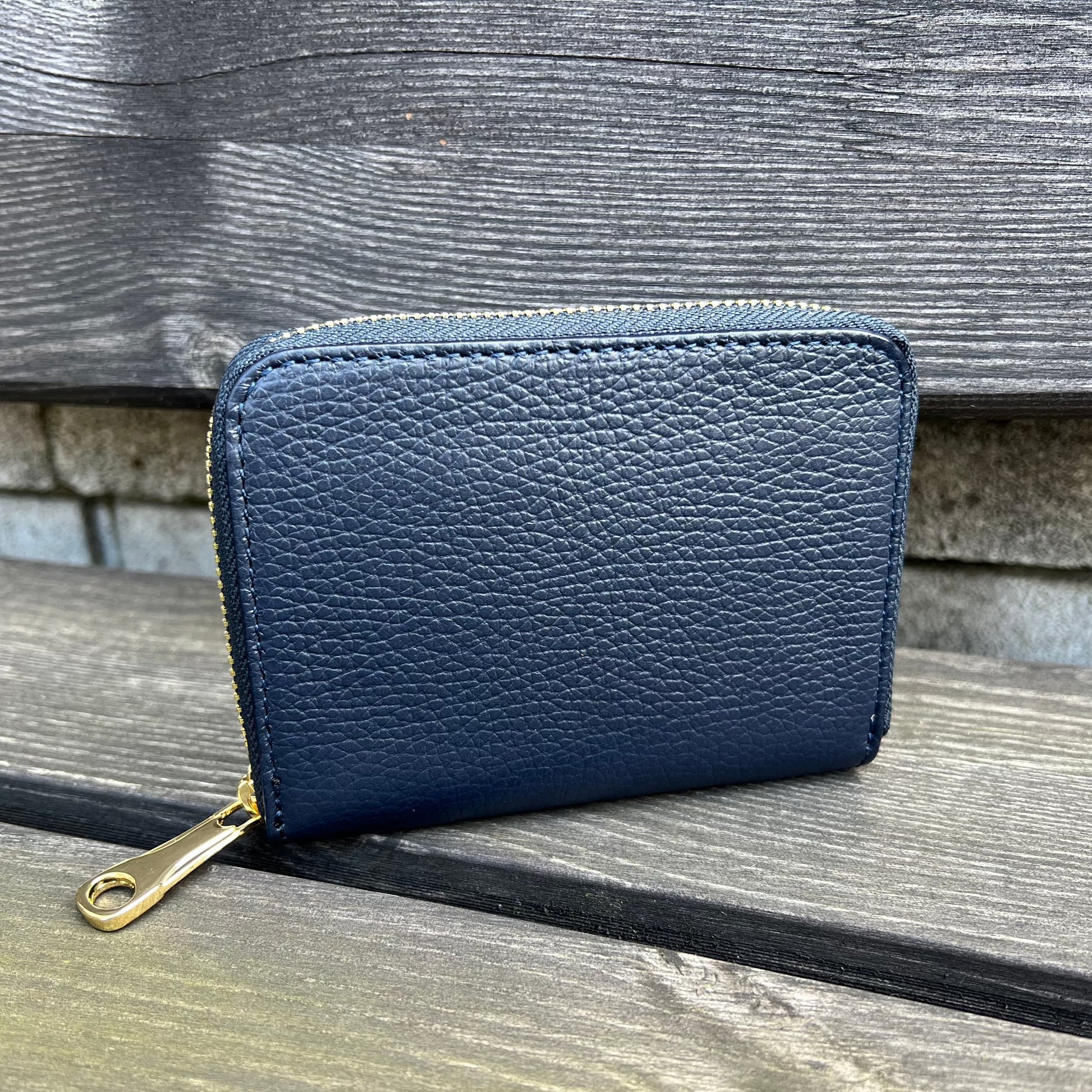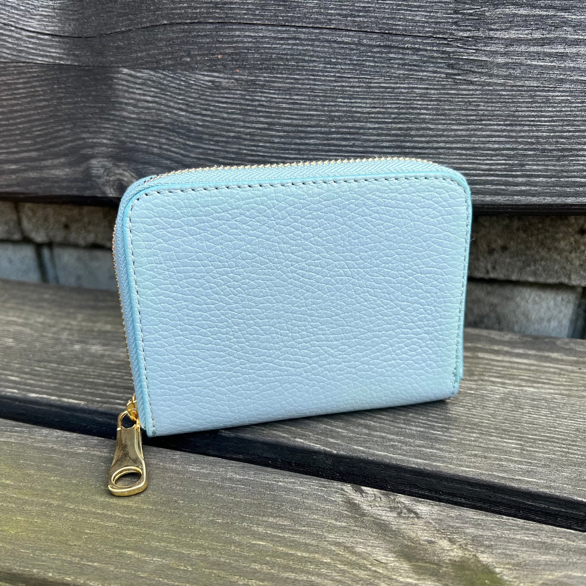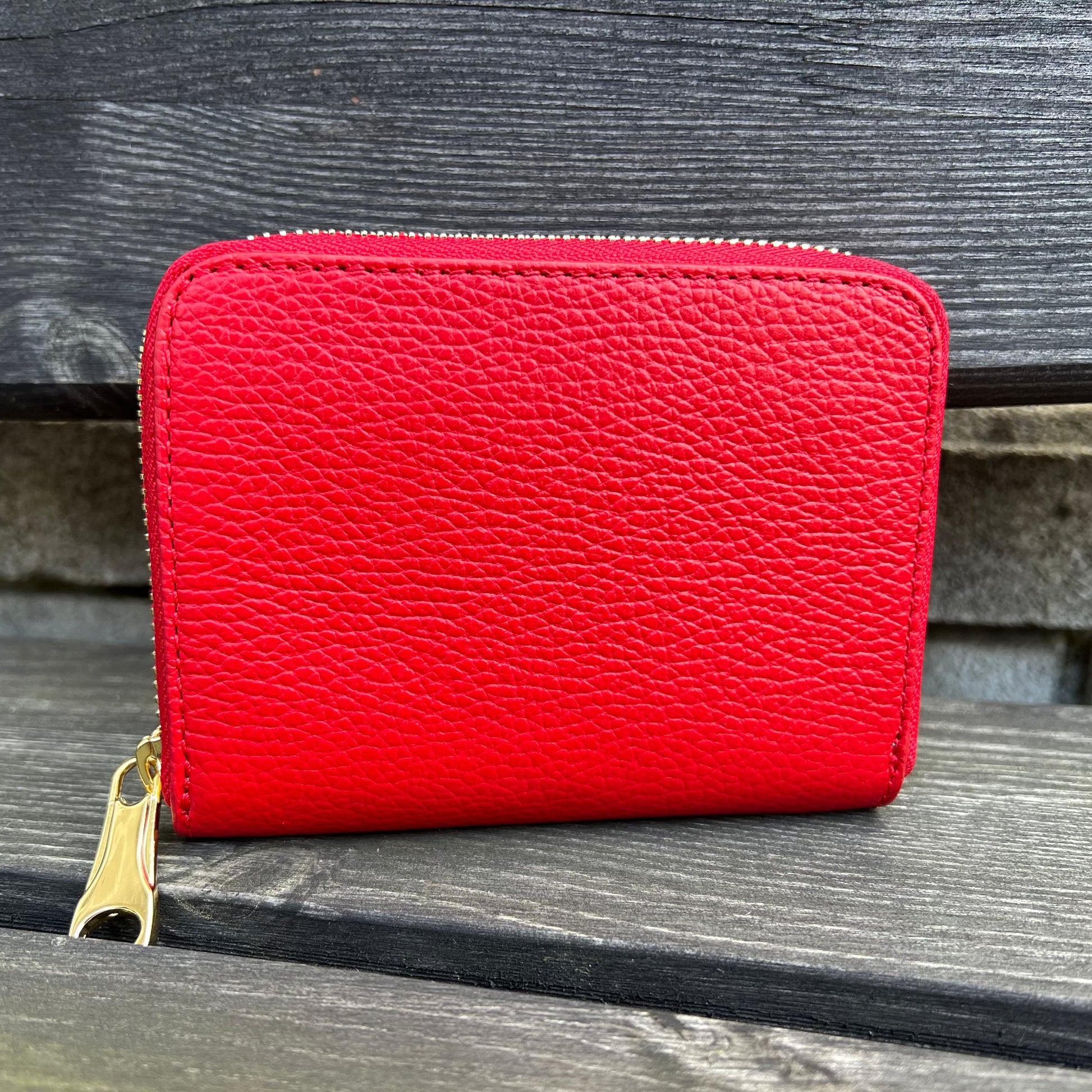 Im Lieferumfang enthalten ist eine Geldbörse aus Leder mit goldenem Zip.