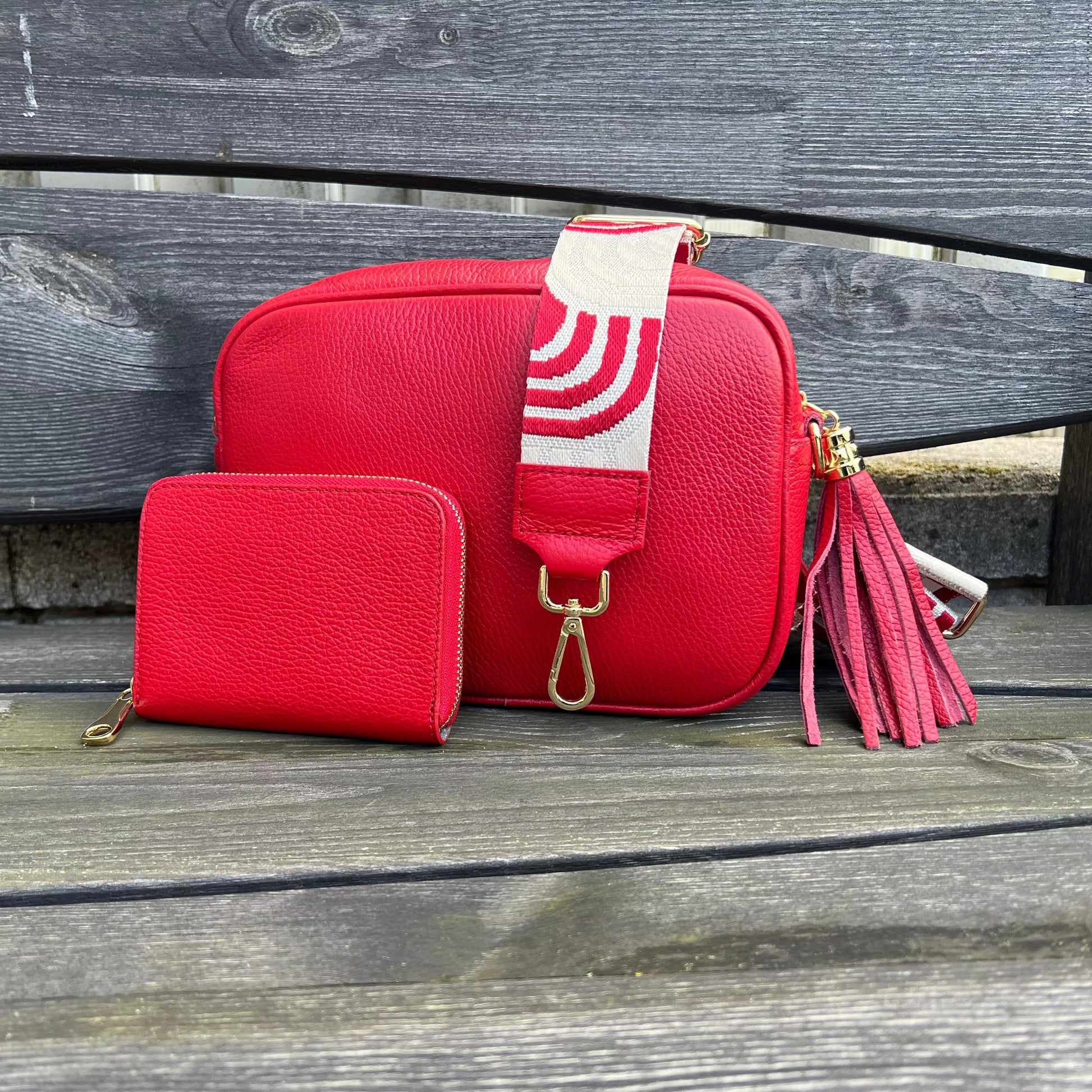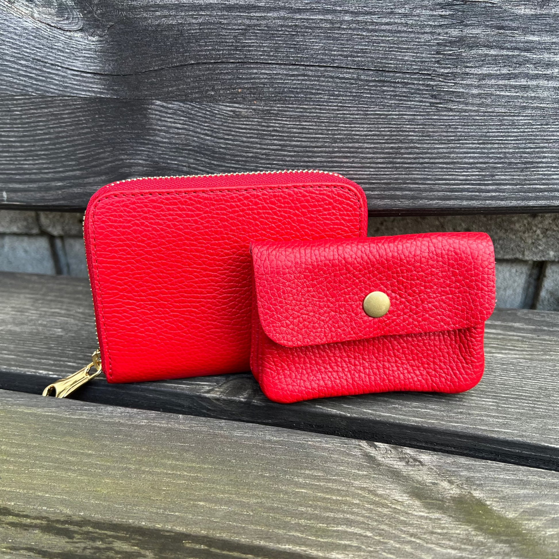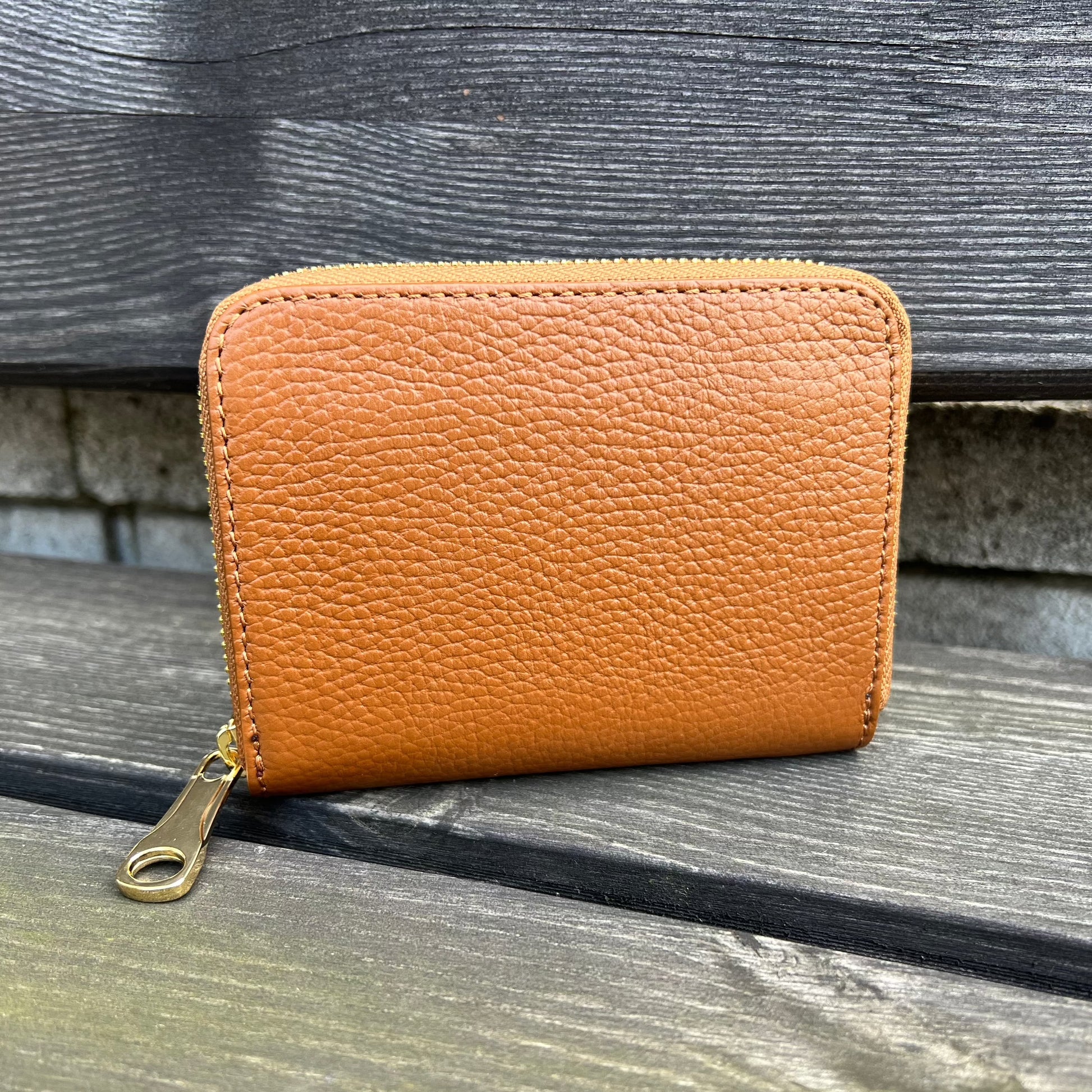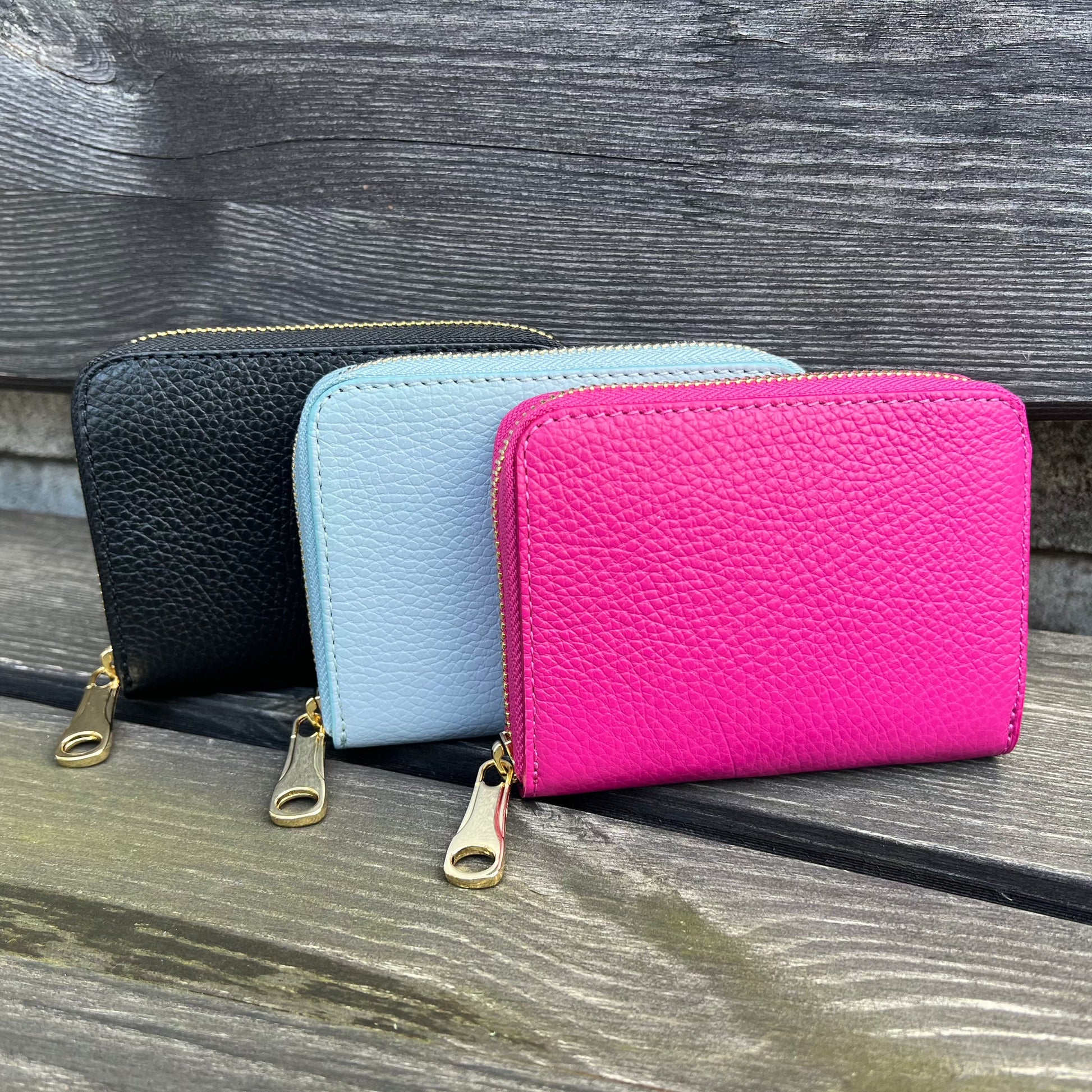 Im Lieferumfang enthalten ist eine Geldbörse aus Leder mit goldenem Zip.