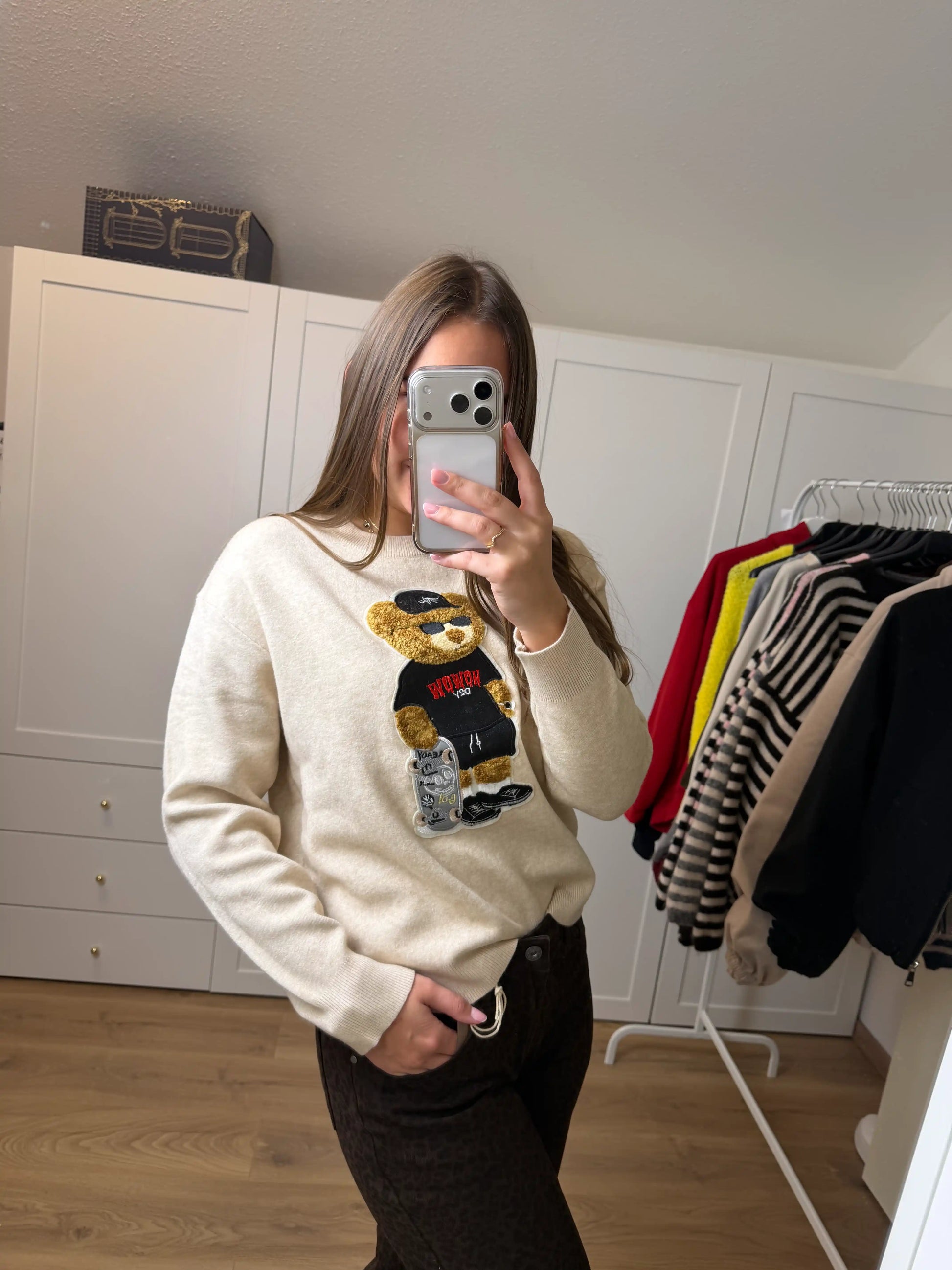 Weicher Pullover mit lässigem Teddy-Patch auf der Vorderseite. Bequeme Passform, ideal für stylische Casual-Looks mit einem verspielten Twist.