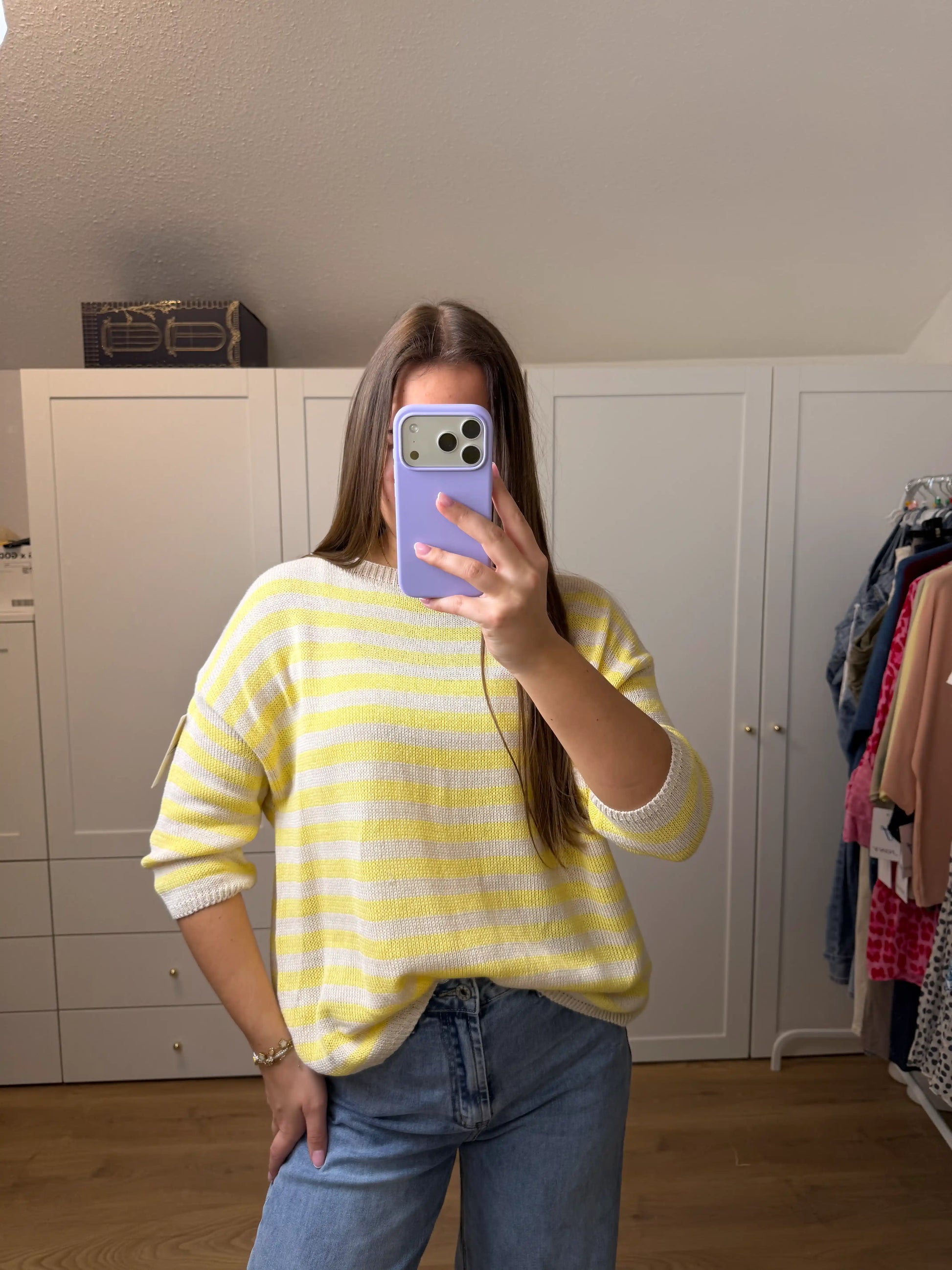 Weicher Strickpullover mit klassischem Streifenmuster und lockerem Schnitt. Perfekt für lässige und zeitlose Alltagslooks.