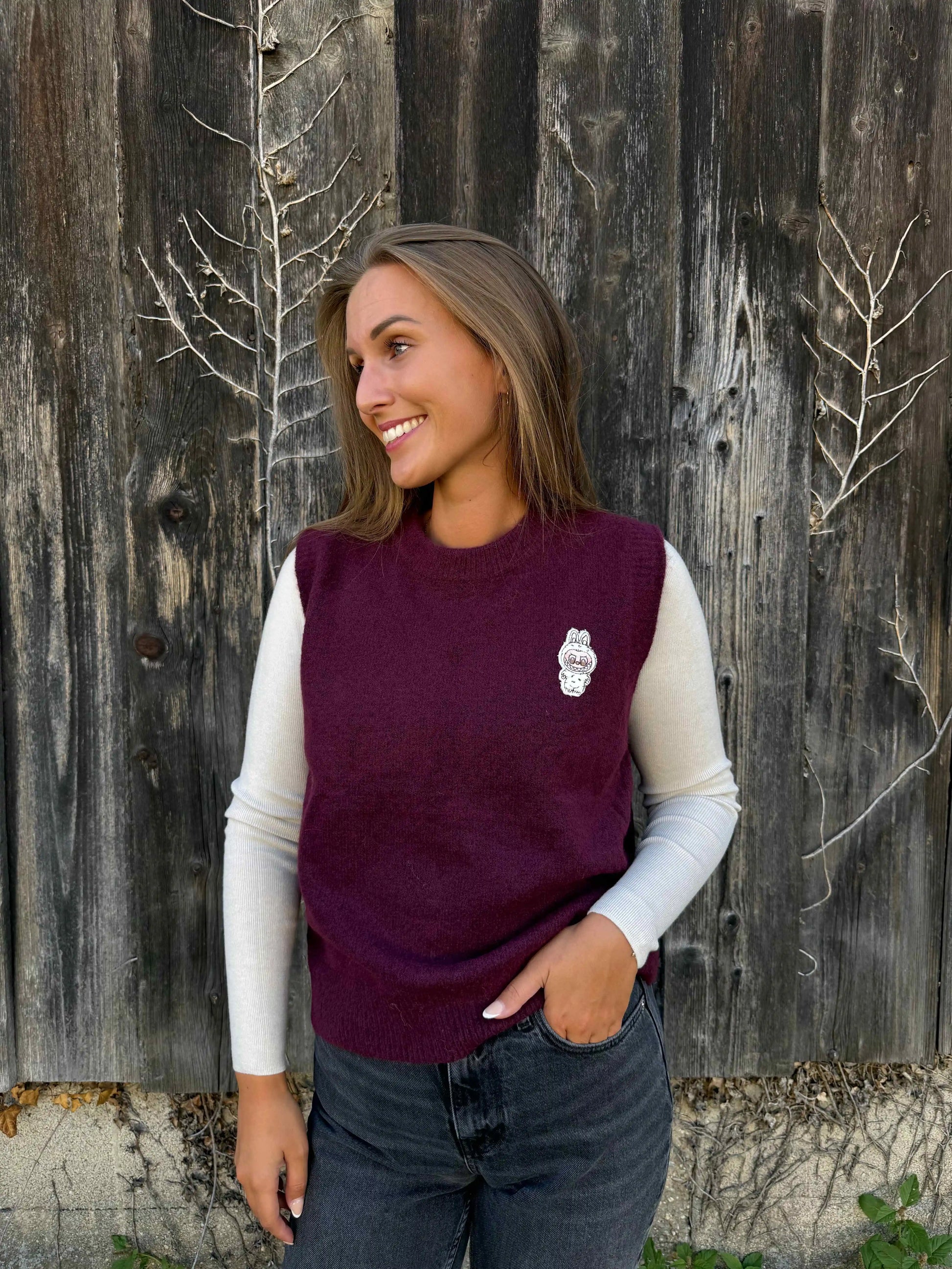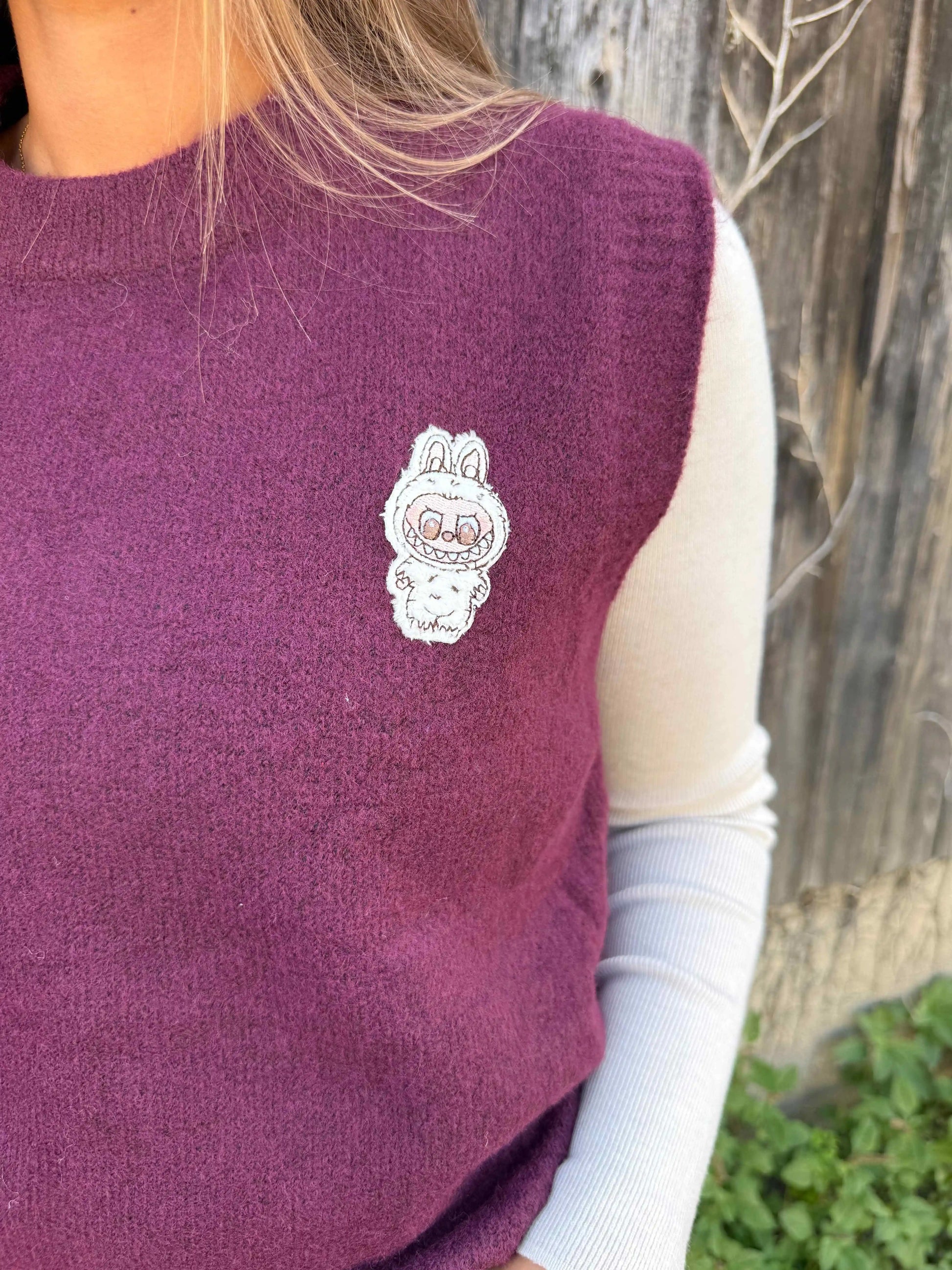 Dieser weiche Pullunder überzeugt mit schlichter Eleganz und einem süßen Highlight: einem kleinen aufgestickten Bunny-Motiv auf der Brust. Ideal zum Kombinieren über Shirts, Blusen oder Kleider – für einen gemütlichen, aber stylischen Look im Alltag.