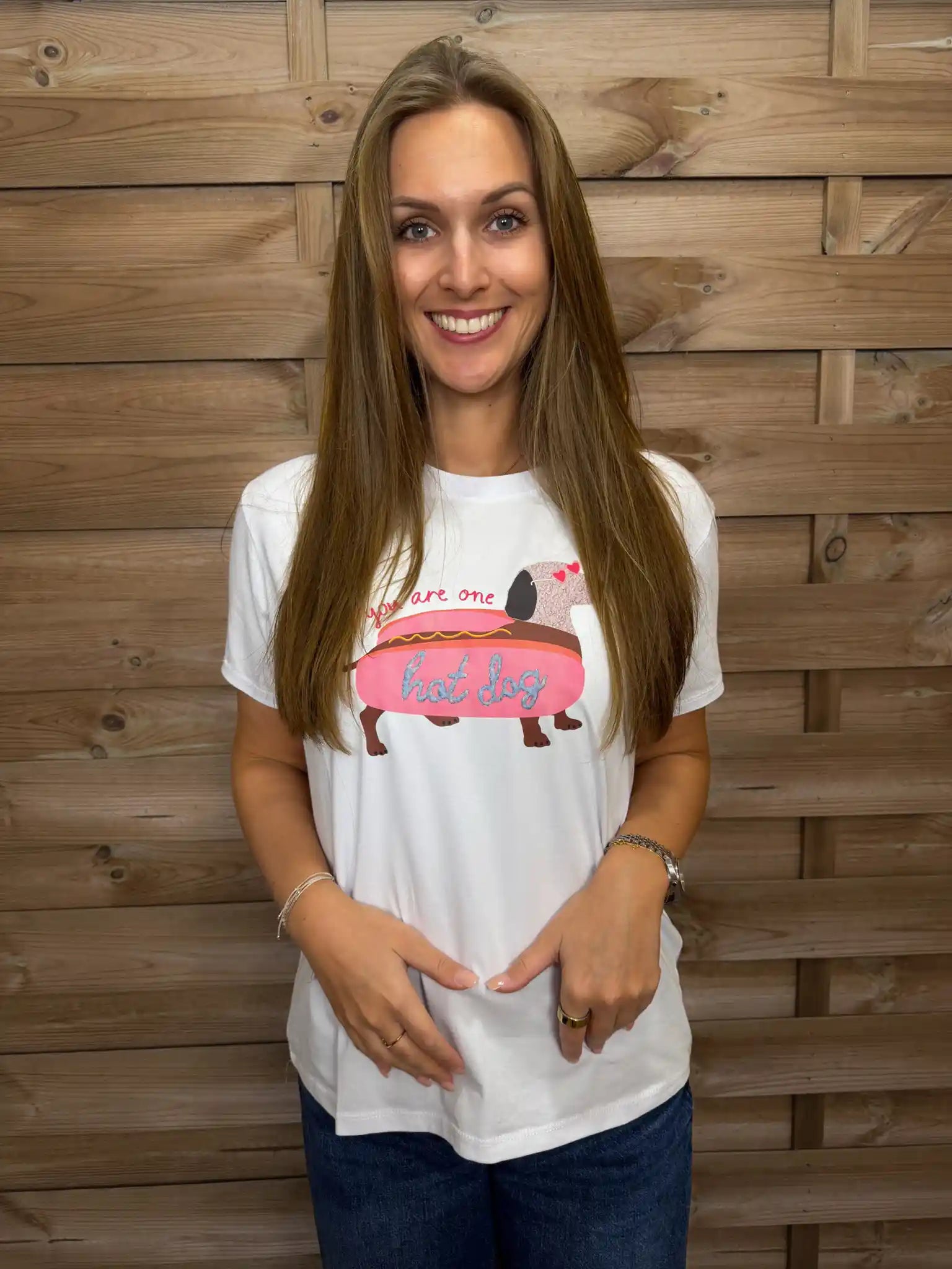 Lässig, verspielt und mit ganz viel Charme – dieses T-Shirt mit süßem Hunde-Print und Statement-Schriftzug ist ein echter Gute-Laune-Garant. Der weiche Stoff und der bequeme Schnitt sorgen für maximalen Komfort, während das Motiv deinem Outfit eine humorvolle, individuelle Note verleiht. Perfekt zu Jeans, Shorts oder unter einer Jacke – ein unkompliziertes Lieblingsstück für jeden Tag.