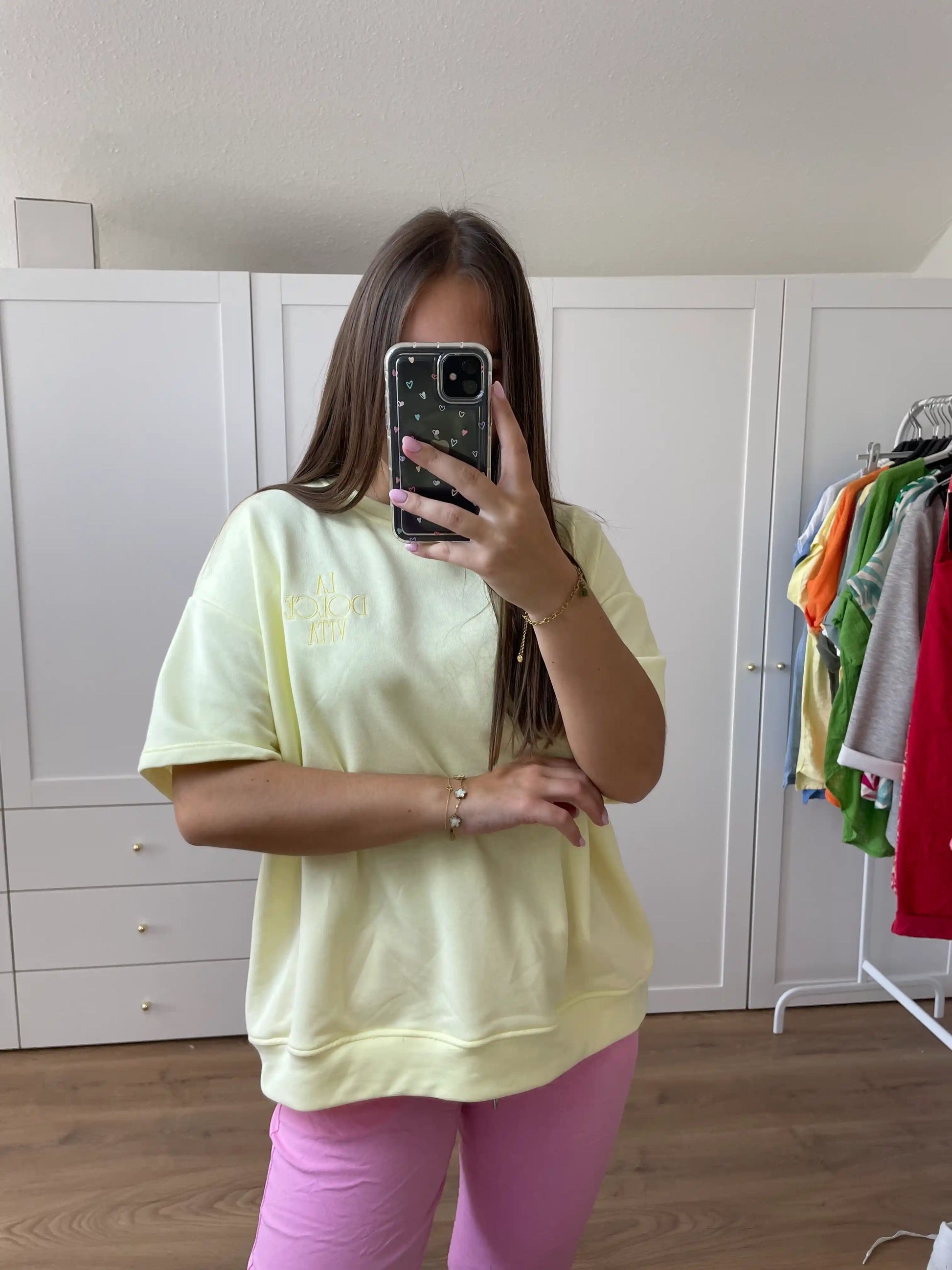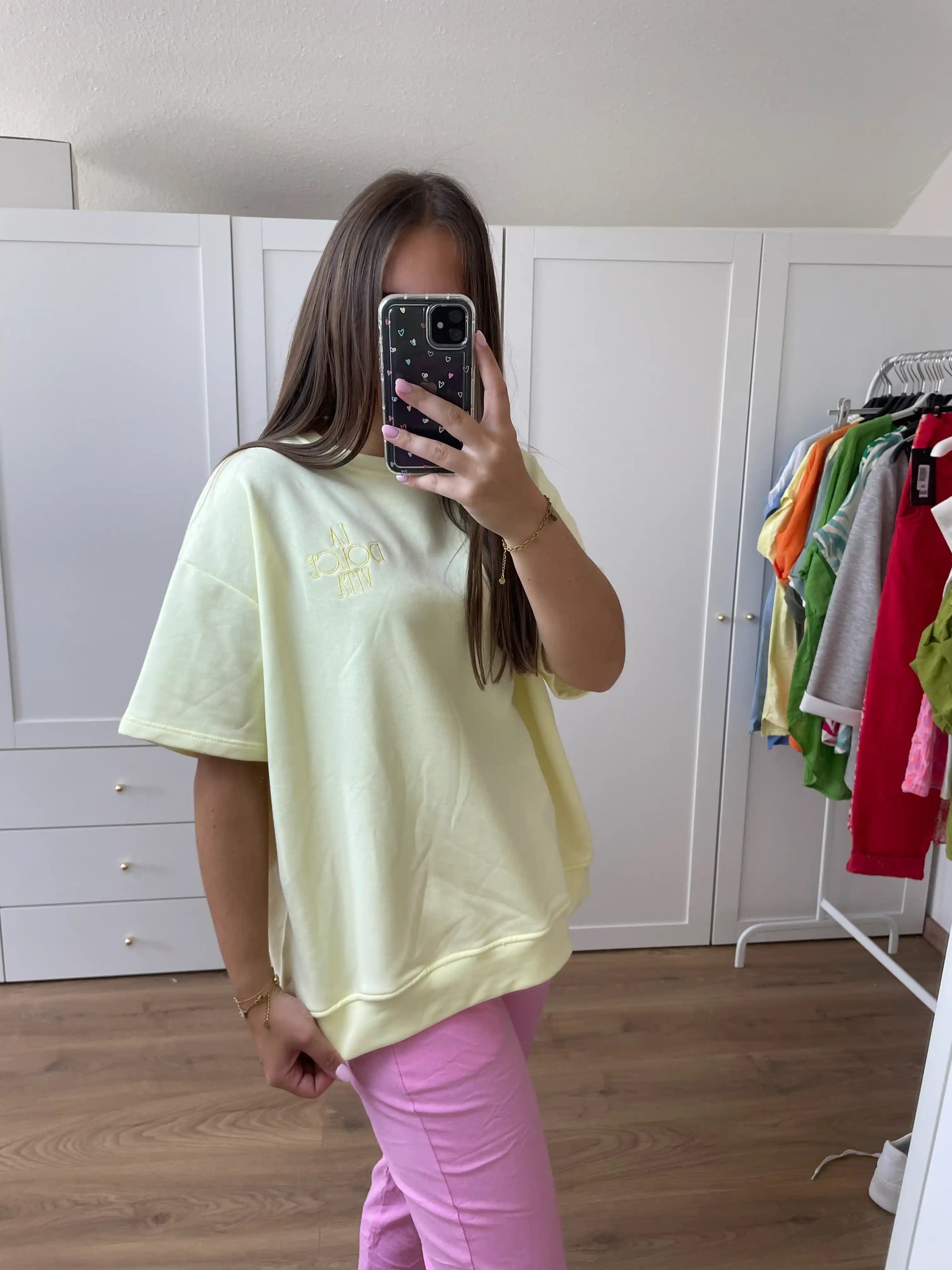 Lässiges Sweatshirt mit gesticktem Schriftzug und lockerem Schnitt – ideal für entspannte Alltagslooks mit modischem Twist.