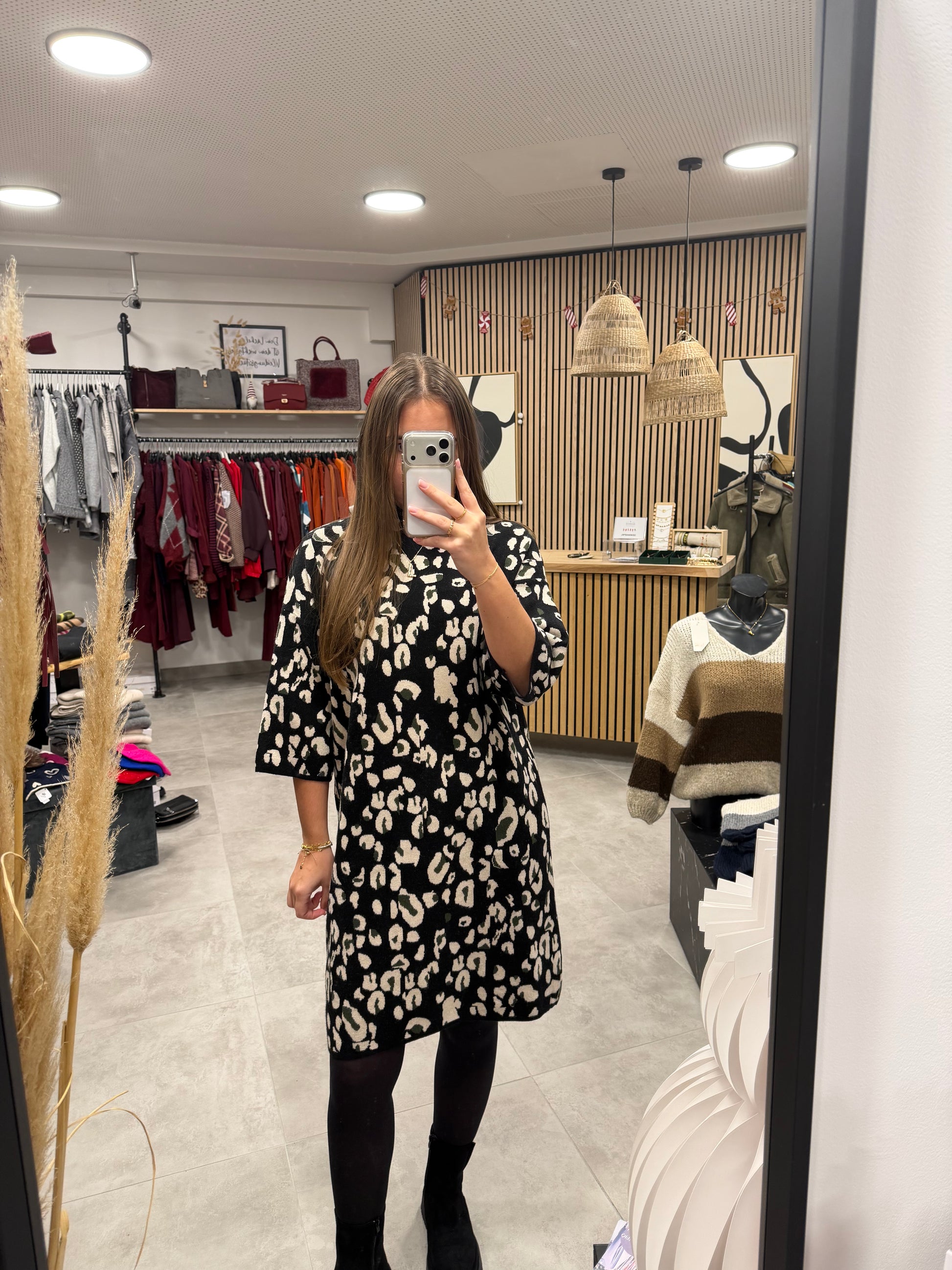 Strickkleid mit 3/4 Ärmeln und Leomuster