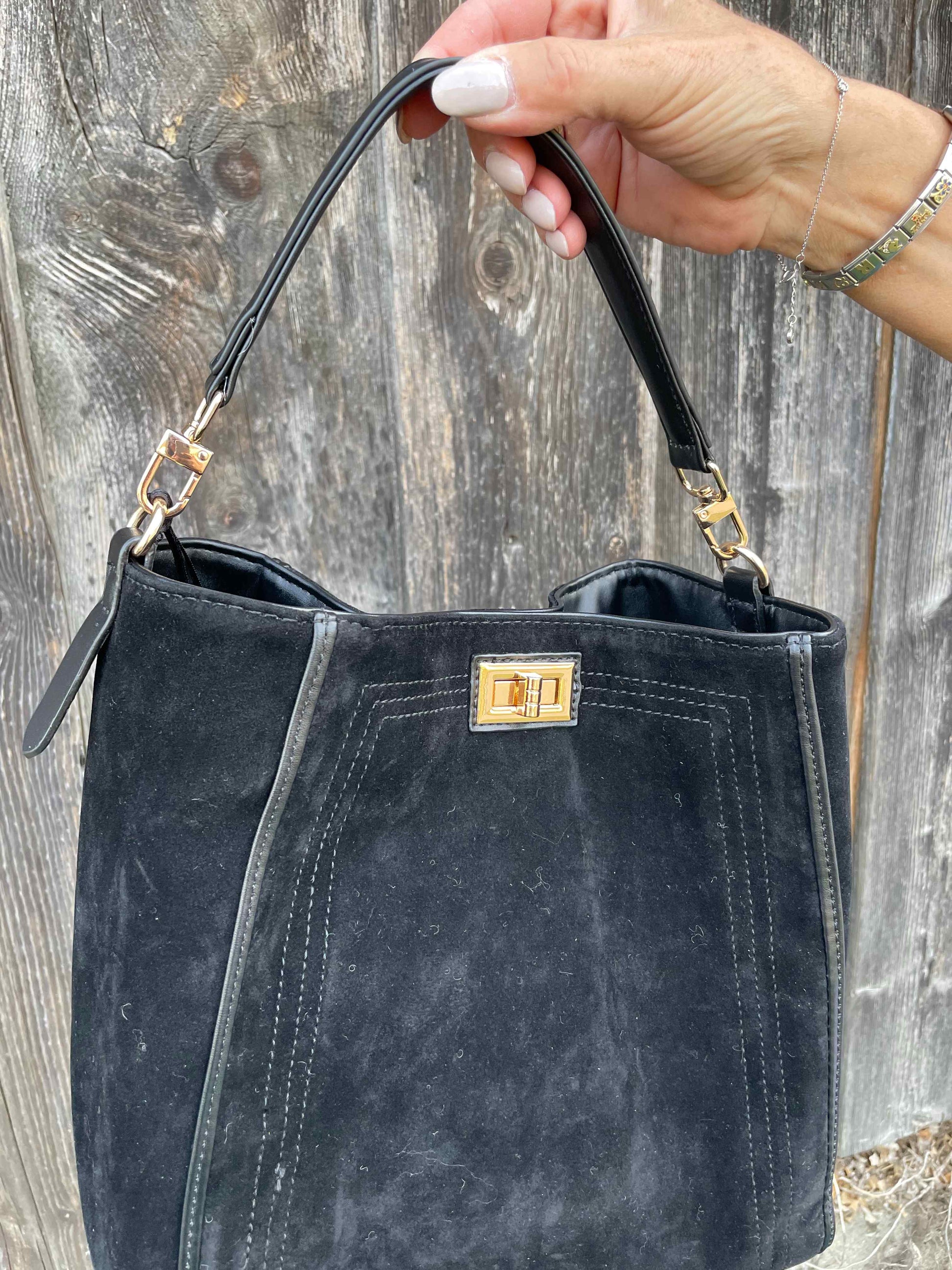 Diese Tasche besticht durch ihre klare Formgebung und edle Velours-Optik. Das leicht strukturierte Material verleiht ihr eine natürliche Eleganz, während dezente Ziernähte und goldfarbene Details einen hochwertigen Akzent setzen. Der kurze, stabile Henkel liegt angenehm in der Hand und macht sie zum idealen Begleiter für den Alltag. Ein stilvoller Drehverschluss rundet das Design funktional und modisch ab. Ob Citytrip oder Büro – diese Tasche verbindet Stil und Alltagstauglichkeit auf perfekte Weise.