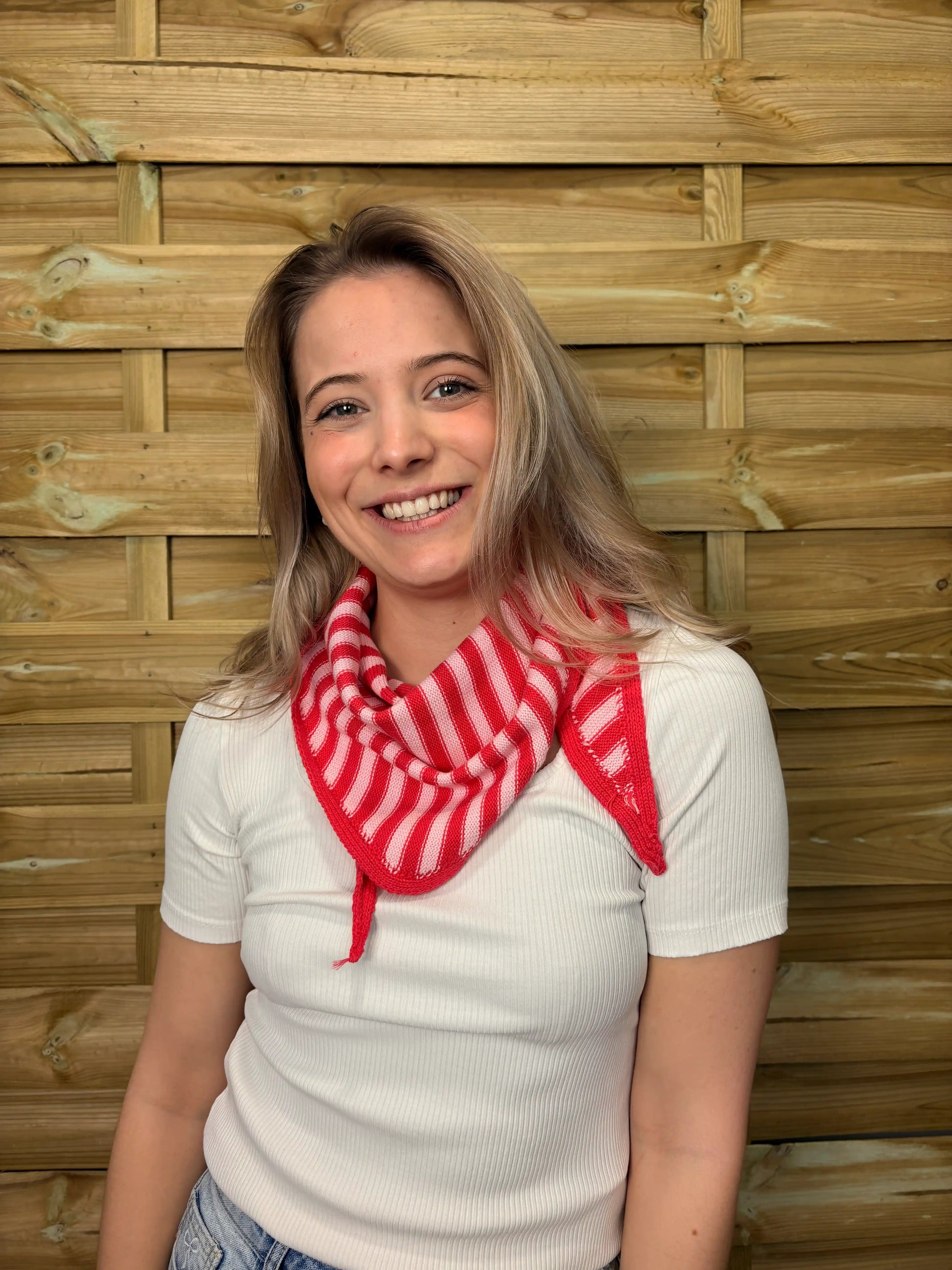 Weiches Dreieckstuch im klassischen Streifenlook – ein unkompliziertes Accessoire mit liebevollem Detail. Der feine Strick sorgt für angenehmen Tragekomfort, während die Form sich lässig um den Hals legen lässt.